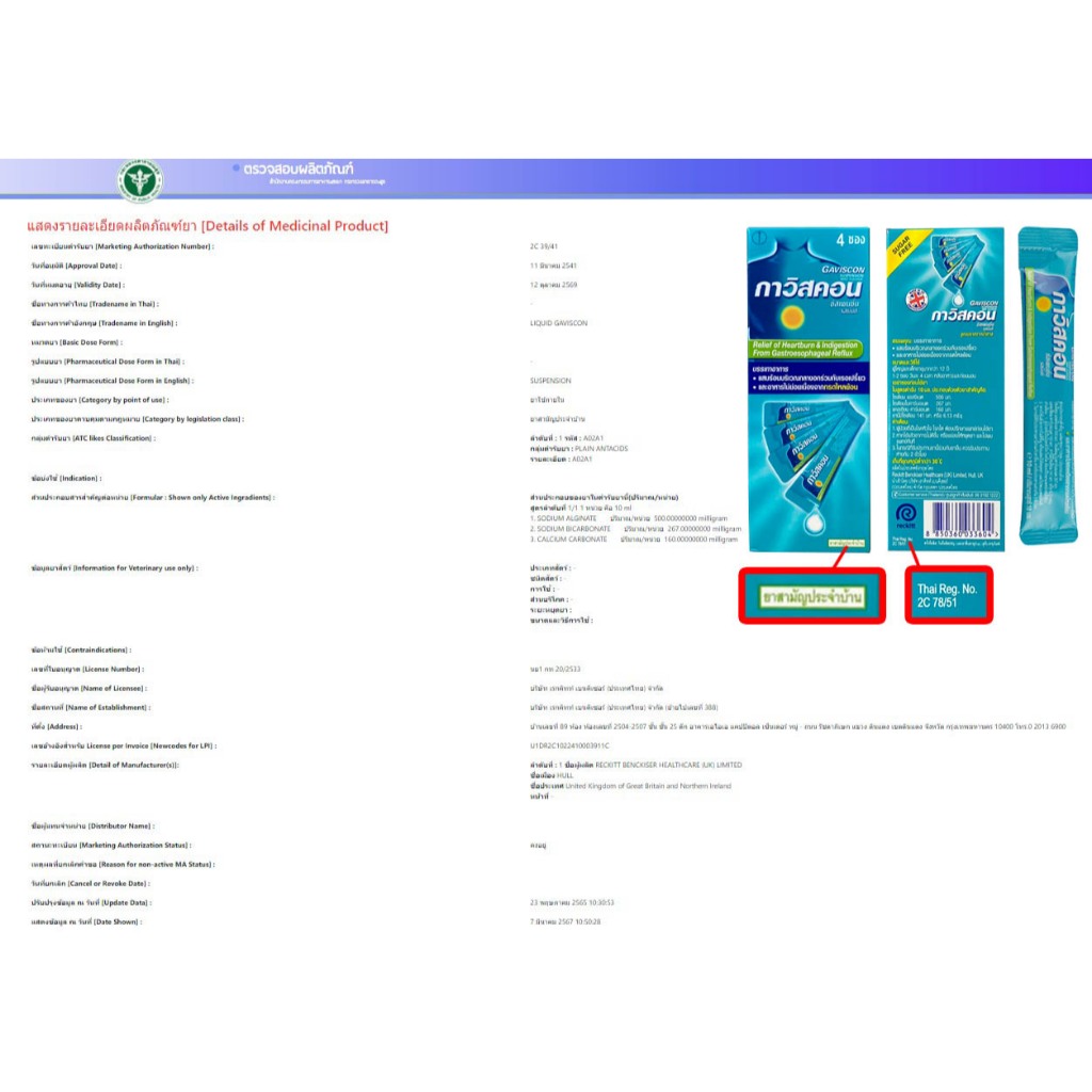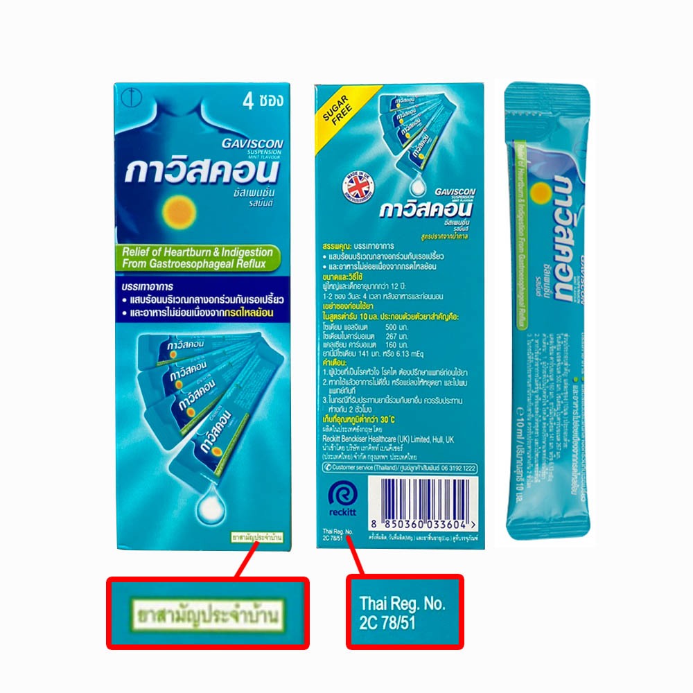 Gaviscon Suspension Mint Flavour 10ml. กาวิสคอน รสมิ้นต์ 4 ซอง [1 กล่องเล็ก สีฟ้า] JJ 2112 กรดไหลย้อน ยาสามัญประจำบ้าน