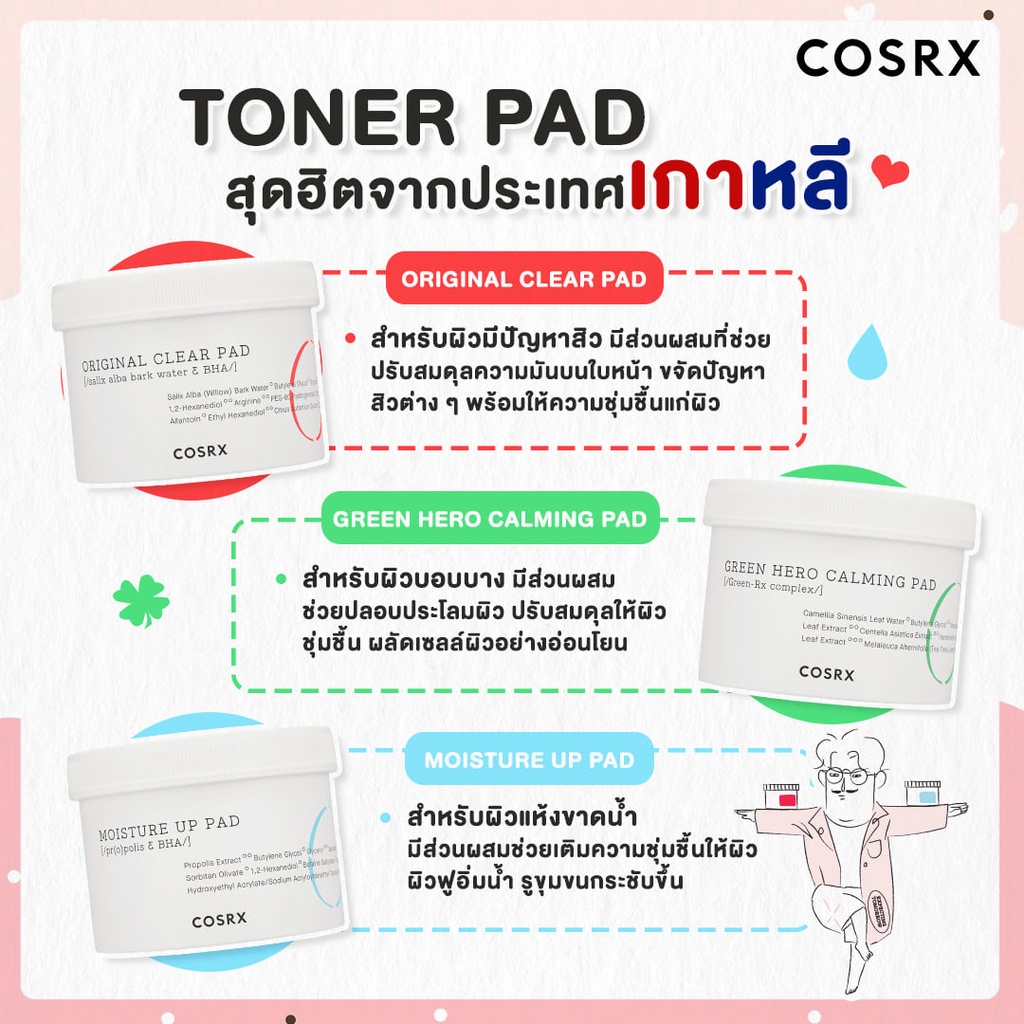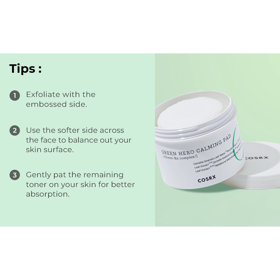 COSRX Green Calming Pad 70pads โทนเนอร์ชนิดแผ่น ปลอบประโลมผิวระคายเคืองง่าย ผลัดเซลล์ผิวอย่างอ่อนโยน