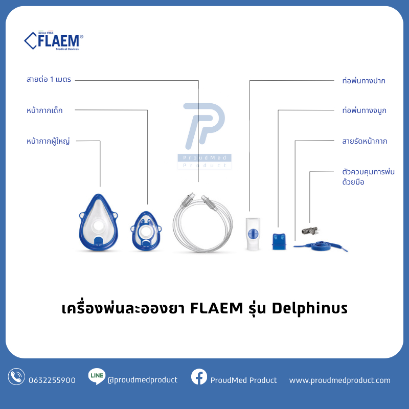 FLAEM เครื่องพ่นละอองยา รุ่น Delphinus พ่นเร็ว อนุภาคยาขนาดเล็ก พ่นต่อเนื่องได้ ตัวเครื่องสีฟ้า