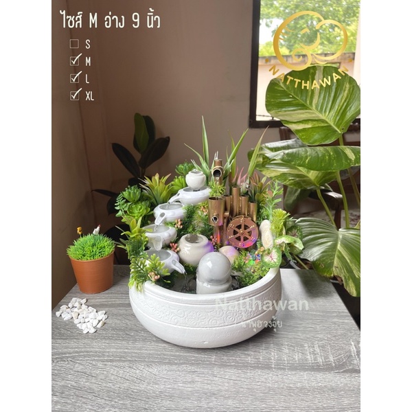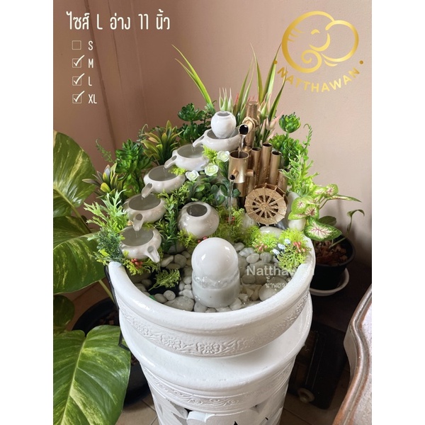 น้ำพุฮวงจุ้ย - ชุดกังหัน ถ้วยน้ำไหลเสริมฮวงจุ้ย หินหมุน น้ำล้น [พร้อมมอเตอร์ ไม่ต้องประกอบเอง]