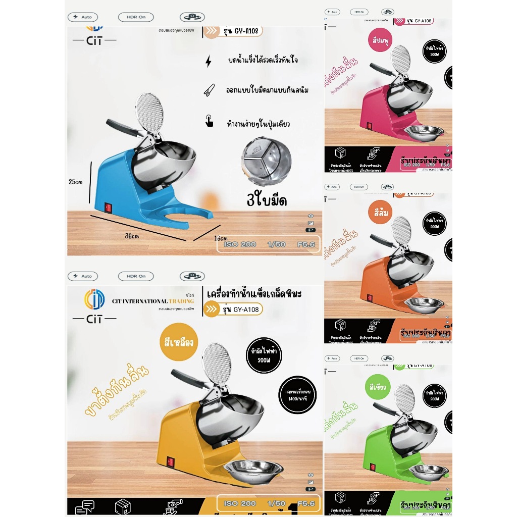 เครื่องบดน้ำแข็ง 3 ใบมีด เครื่องทำน้ำแข็งใส A108