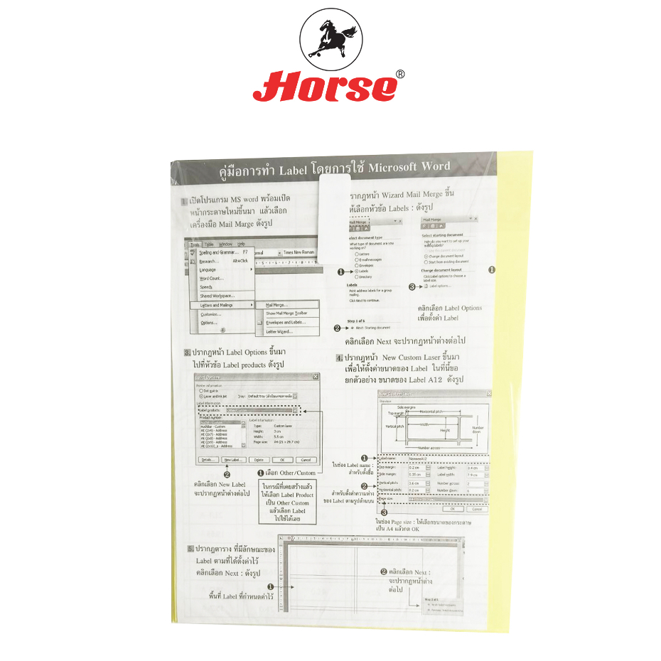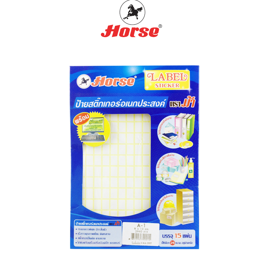 HORSE (ตราม้า) ป้ายสติกเกอร์ LABEL STICKER อเนกประสงค์ A1-A20 (15แผ่น/กล่อง) จำนวน 1 กล่อง