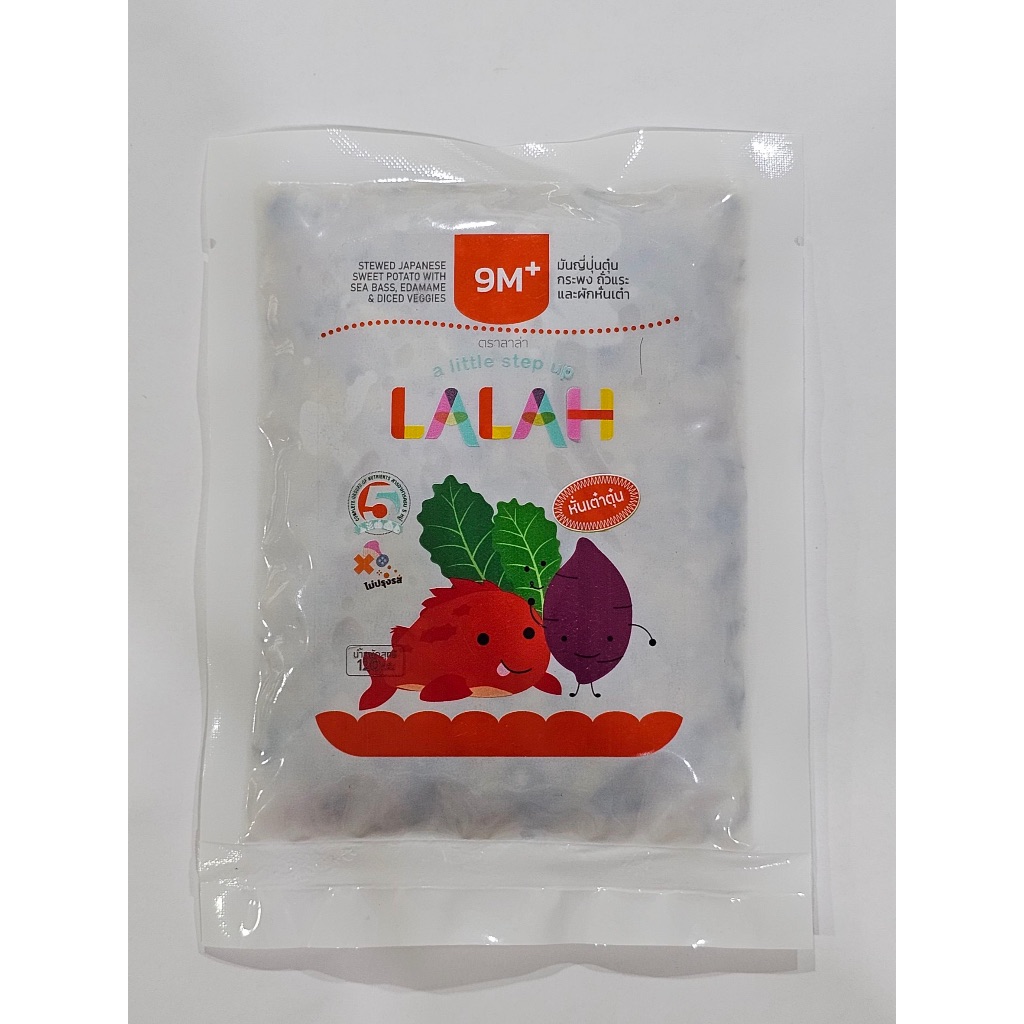 มันญี่ปุ่นปลากะพง ถั่วแระญี่ปุ่นและผัก (อาหารเสริมหั่นเต๋าตุ๋น 9+)