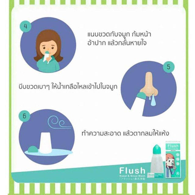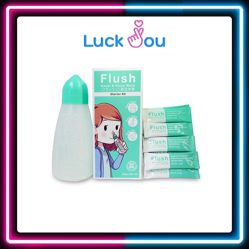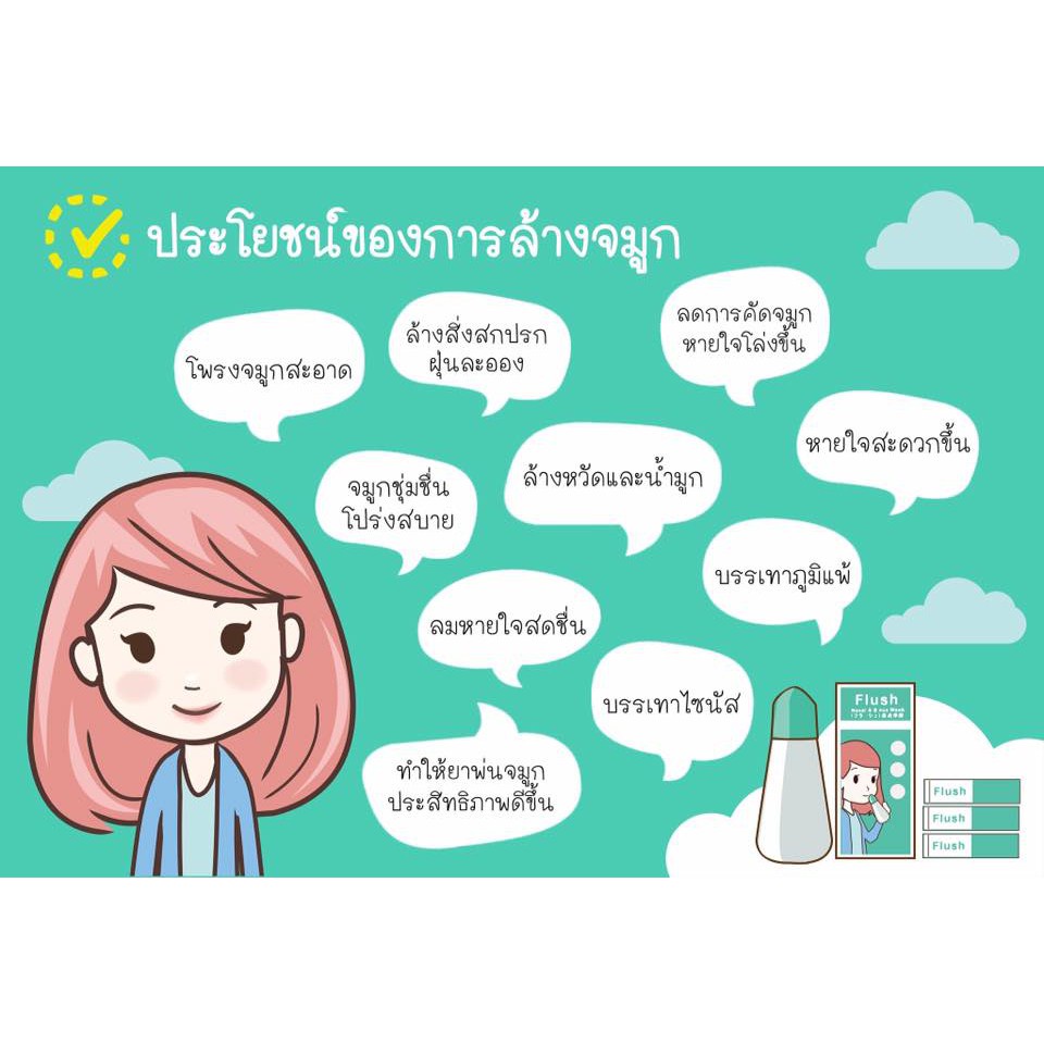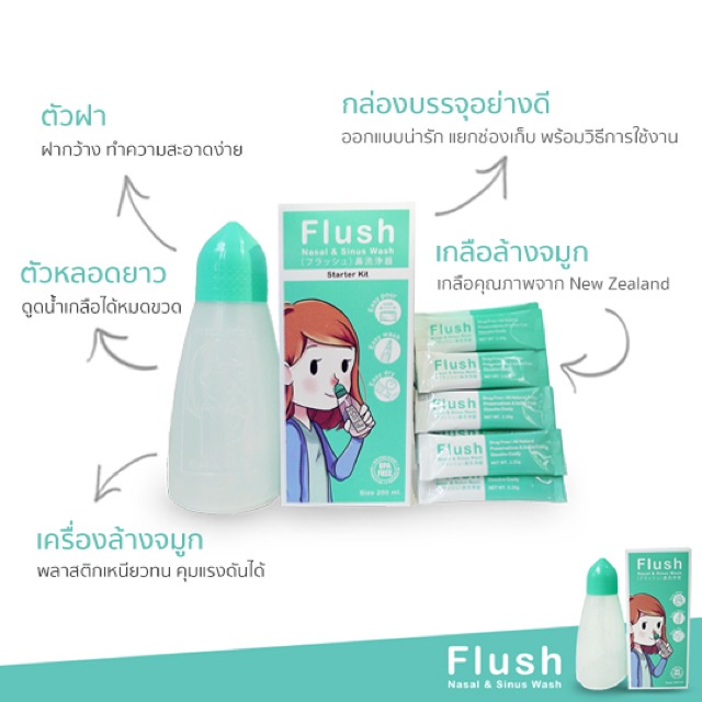 Flush อุปกรณ์ล้างจมูก แถมแปรงล้างขวด และเกลือ 14 ซอง / เกลือกล่อง 30 ซอง