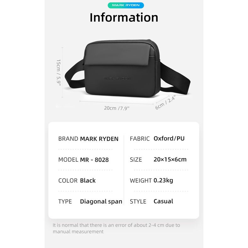 MARK RYDEN กระเป๋าสะพายข้าง ขนาดเล็ก สําหรับผู้ชาย