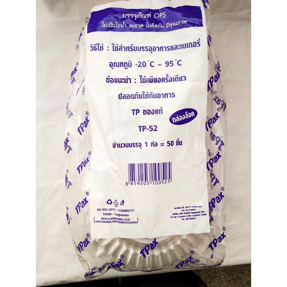 กล่องใส่อาหาร พลาสติก OPS TP-52 ฝาล็อคในตัว กล่องกลม 50ใบ