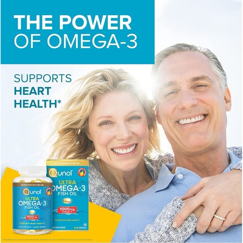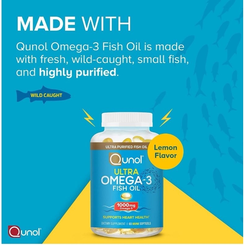 Qunol Omega 3 Fish Oil Mini Softgels, 1000mg Ultra Pure Fish Oil, Heart Health Support,