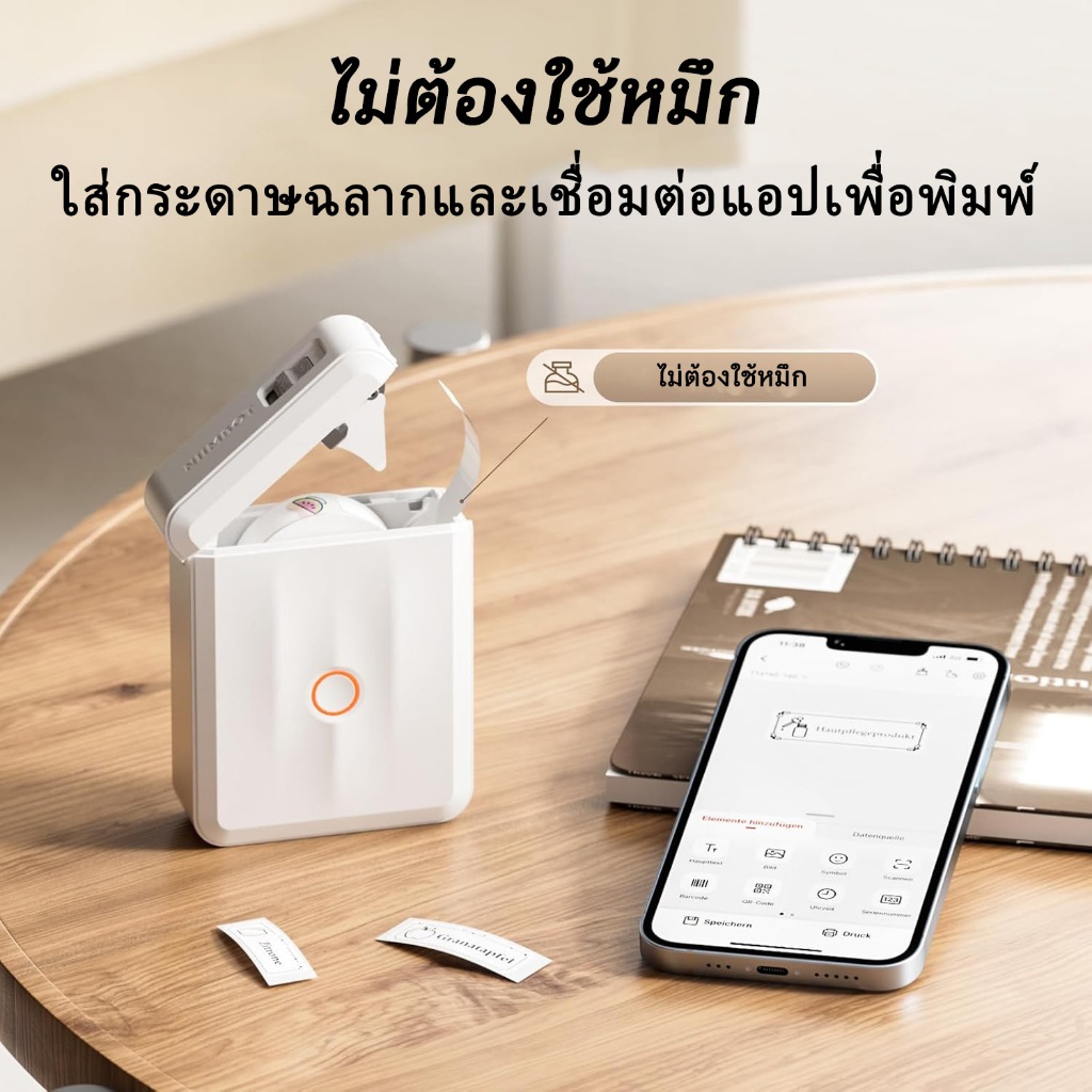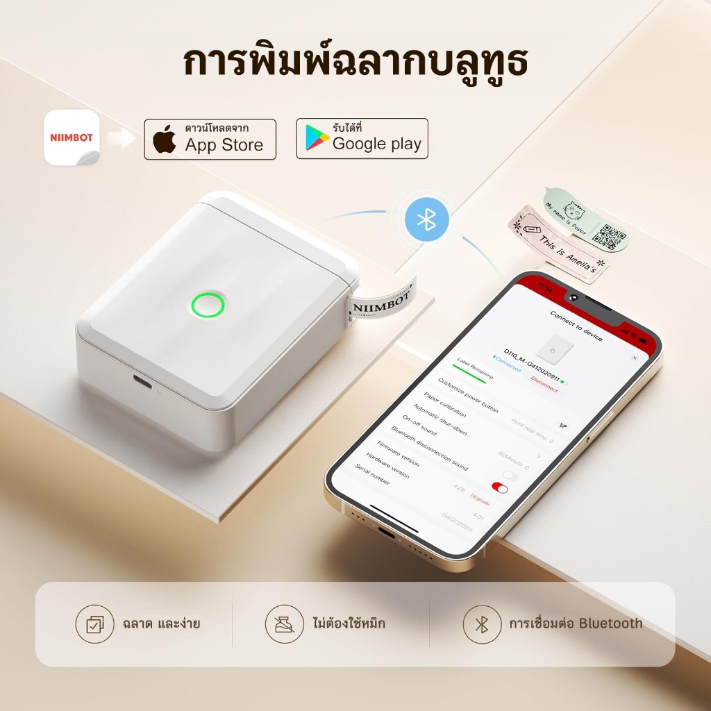 NIIMBOT D110 เครื่องพิมพ์สติกเกอร์ฉลากแบบพกพา, เครื่องพิมพ์ฉลากขนาดเล็ก Bluetooth ไร้สาย