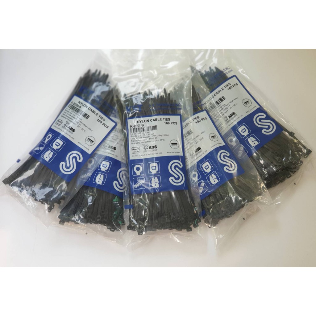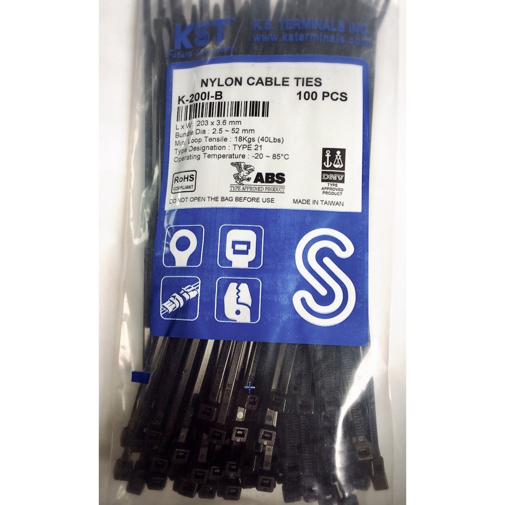 เคเบิ้ลไทร์ KST ของไต้หวัน ขนาด 8 นิ้ว ( 200 * 3.6 mm ) สีดำ จัดแพค 5 ถุง เพื่อประหยัดค่าส่ง