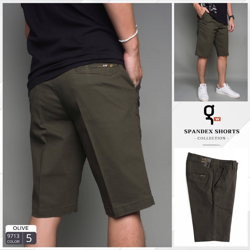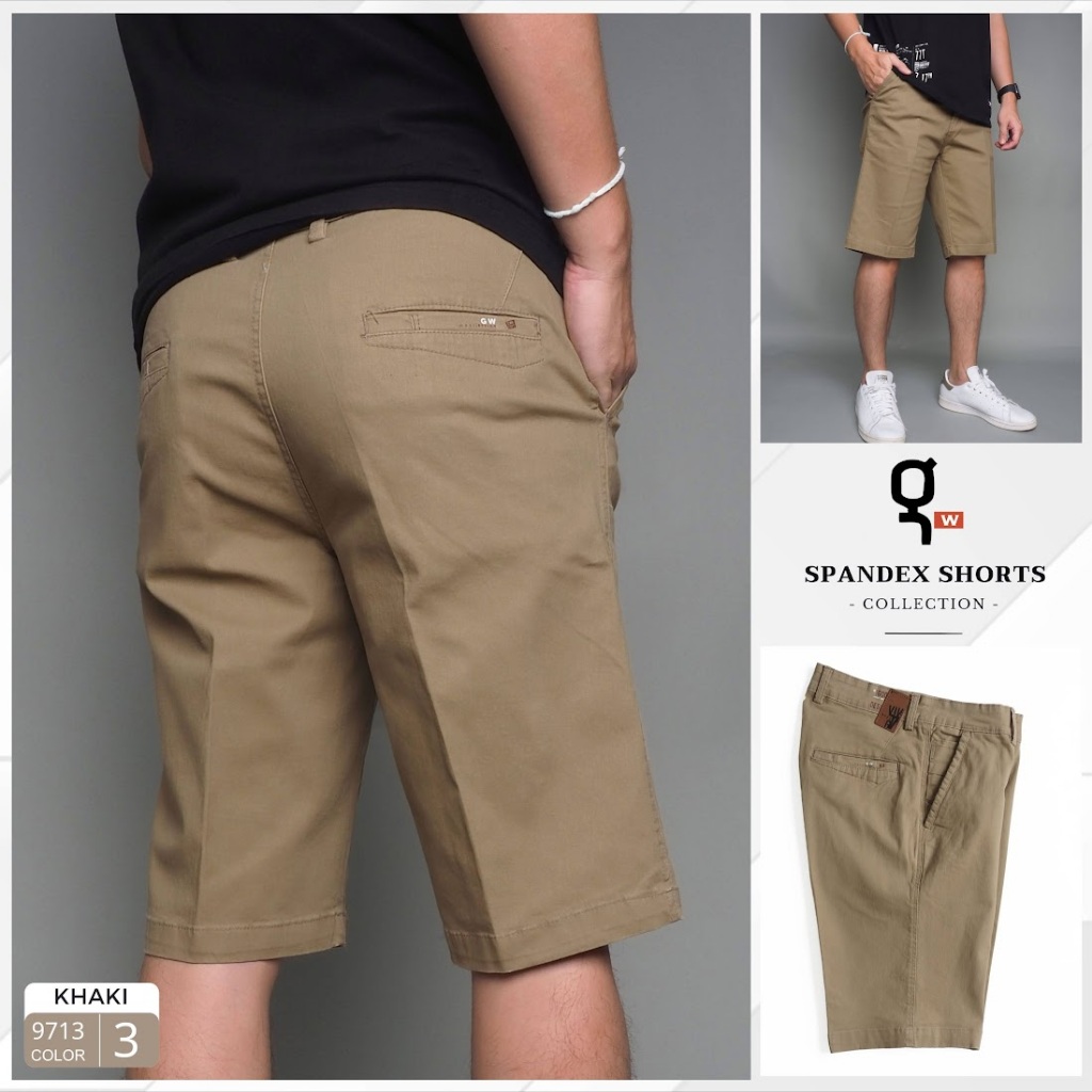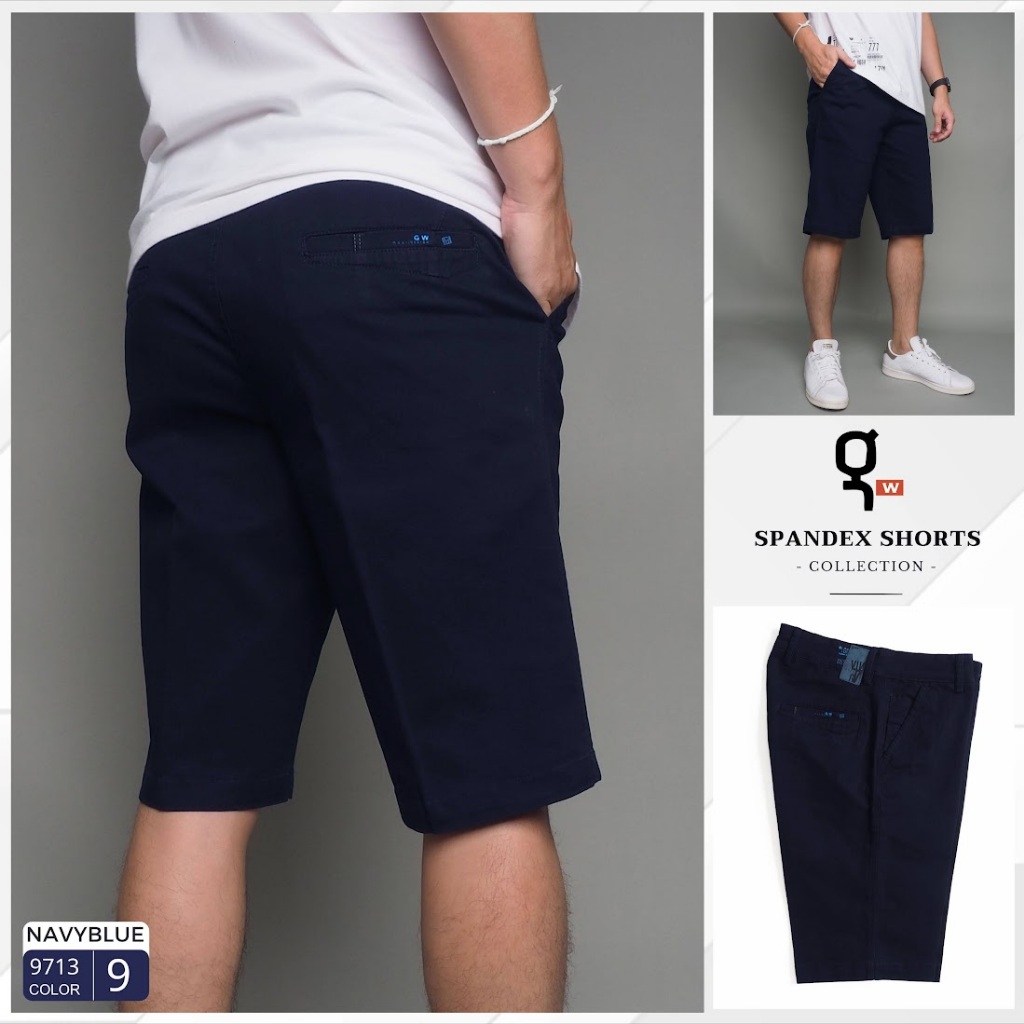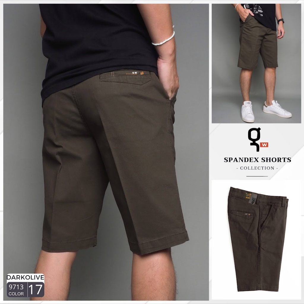 ⚡GW⚡9713 กางเกงขาสั้น ผู้ชาย ผ้ายืด คอตต้อน สีพื้น ยาว 18.5-21 นิ้ว ไซส์ 30-38 Goodwin Brand