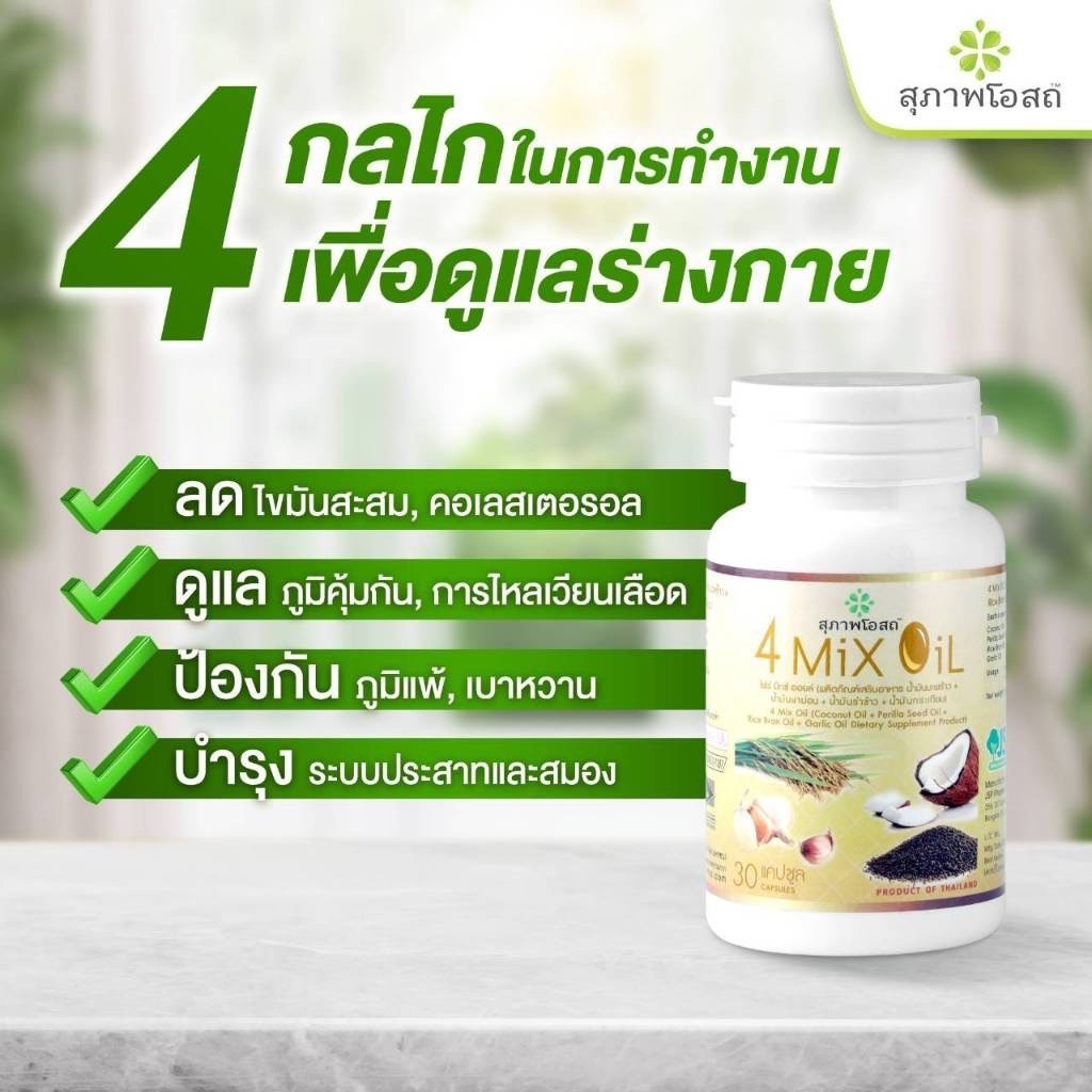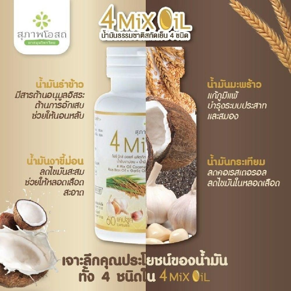 4 Mix Oil โฟร์มิกซ์ออยล์ สุภาพโอสถ(60แคปซูล) น้ำมันสี่สหาย น้ำมันสกัดมะพร้าว, รำข้าว, งาขี้ม้อน, กระเทียม
