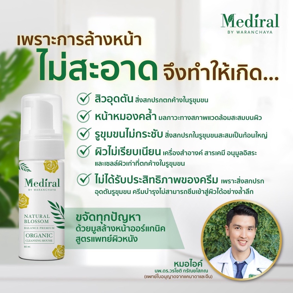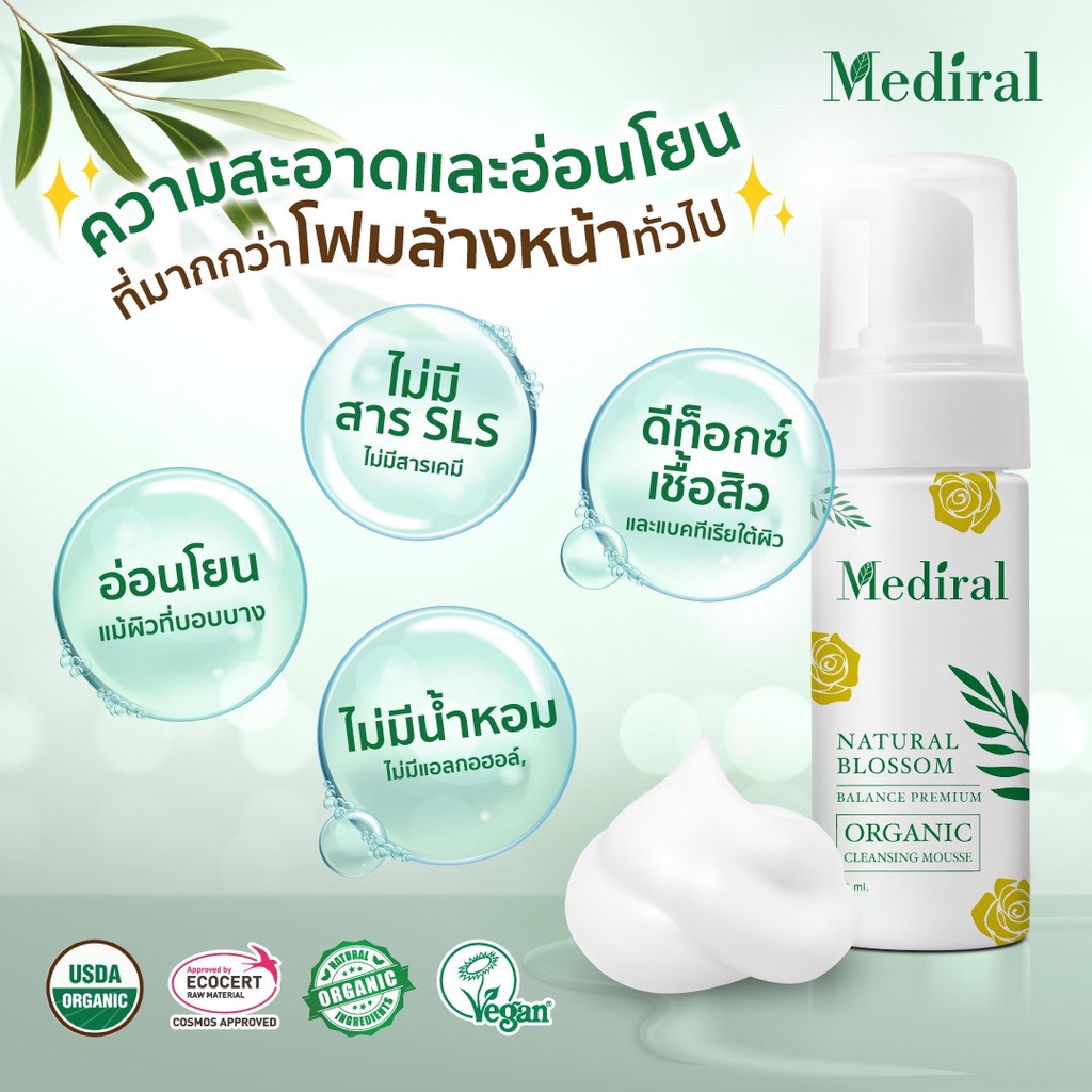 ของแท้ส่งฟรี!! Mediral เมดิรอล มูสโฟมล้างหน้าออร์แกนิก ผิวบอบบางแพ้ง่ายใช้ได้ เวชสำอางค์ที่แพทย์ผิวหนังแนะนำ