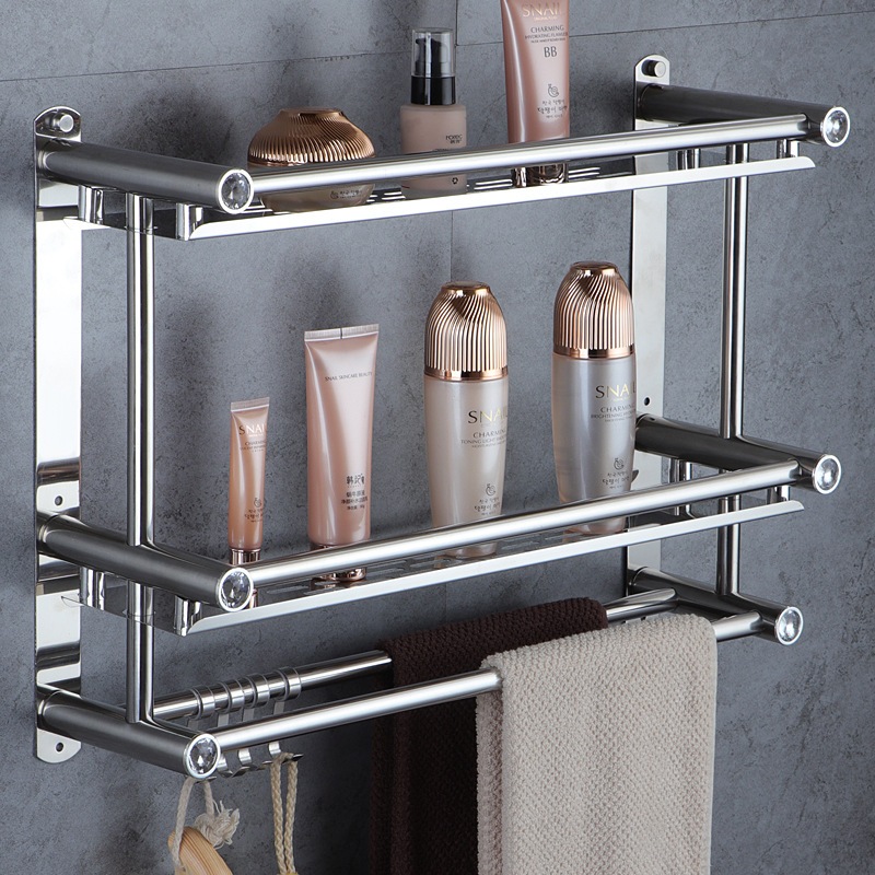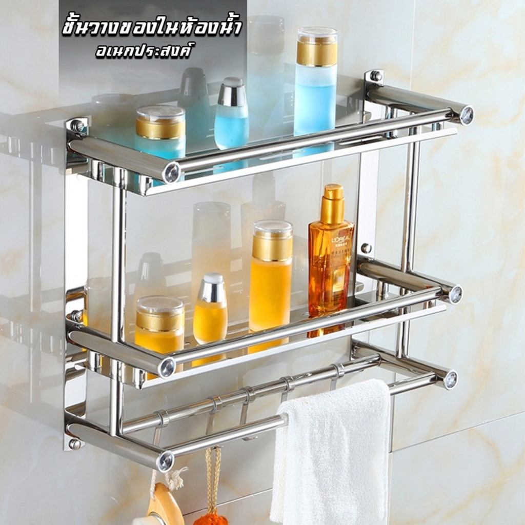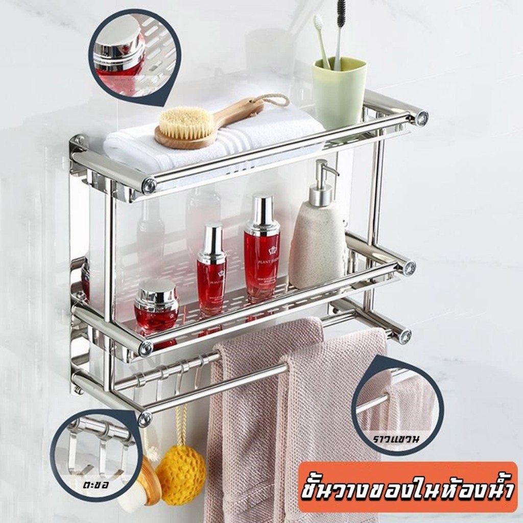 🔥สแตนเลส304🔥ราวตากผ้าในห้องน้ำ 1-3ชั้น ชั้นวางของในห้องน้ำ ไม่เจาะผนัง ไม่เป็นสนิม พร้อมราวตากผ้าและตะขอ ชั้นวางห้องน้ำ