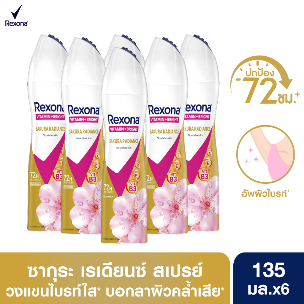 เรโซนา สเปรย์ระงับกลิ่นกาย หอมสดชื่นยาวนาน 135 มล.x6 Rexona Deodorant Spray 135 ml x6