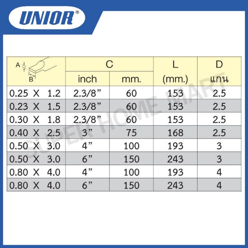 Unior ไขควงช่าง อิเลคโทรนิค รุ่น 605E แกนเล็ก ด้ามเล็ก แบน ขนาดปาก 1.2 ถึง 4 มิล #ไขควง#ช่างอิเลคโทรนิค#แกนเล็ก#ปากแบน