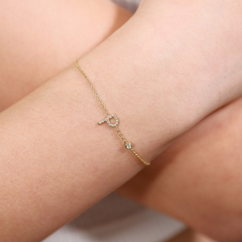 Grace Fine Jewelry สร้อยข้อมือทองแท้ 9K P Alphabet with Initial Diamond