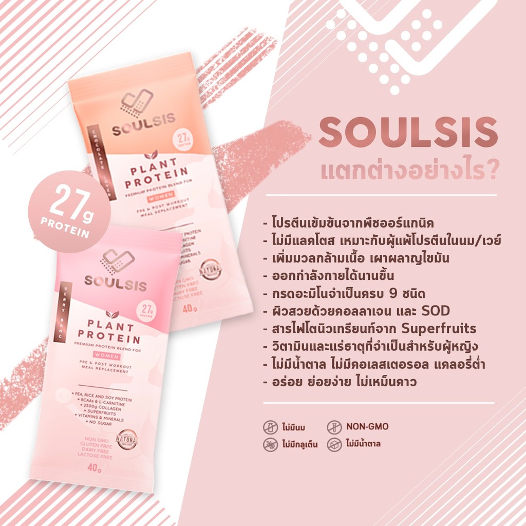 SOULSIS Plant Protein โปรตีนพืช รสChocolate สูตรลีน แทนมื้ออาหาร ก่อน-หลังออกกำลังกาย