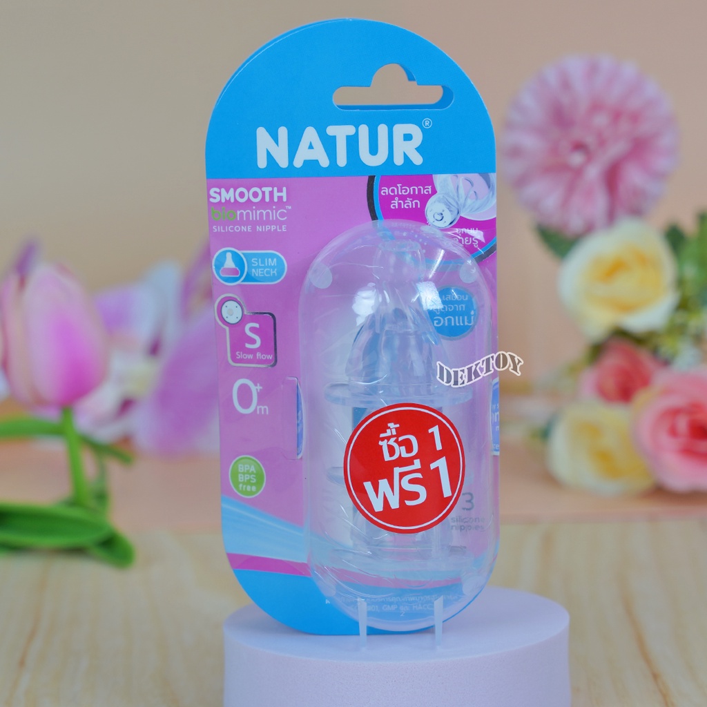 ซื้อ 1 แถม 1 Natur เนเจอร์ จุกนมคอแคบ เนเจอร์สมูทไบโอมิมิค Smooth แพ็ค3ชิ้น