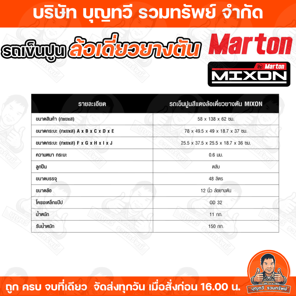 รถเข็นปูน MARTON MIXON ล้อเดี่ยว/ล้อคู่ ขนาด 48-100 ลิตร ล้อยางตันหรือยาง PU กระบะเหล็กไร้รอยเชื่อม แข็งแรง ทนทาน