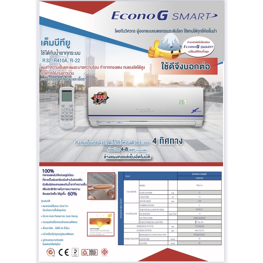คอยเย็น Econo G รุ่นใหม่ X Series คอยเย็นอีโคโน่ ใช้เพื่อเปลี่ยนแทนคอยเย็นตัวเก่าได้ ปล.ระบบอินเวอเตอร์ใช้ไม่ได้