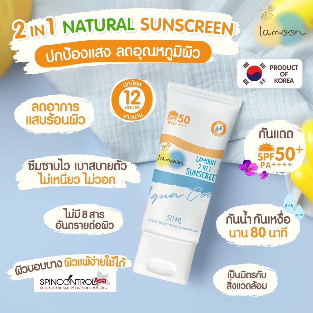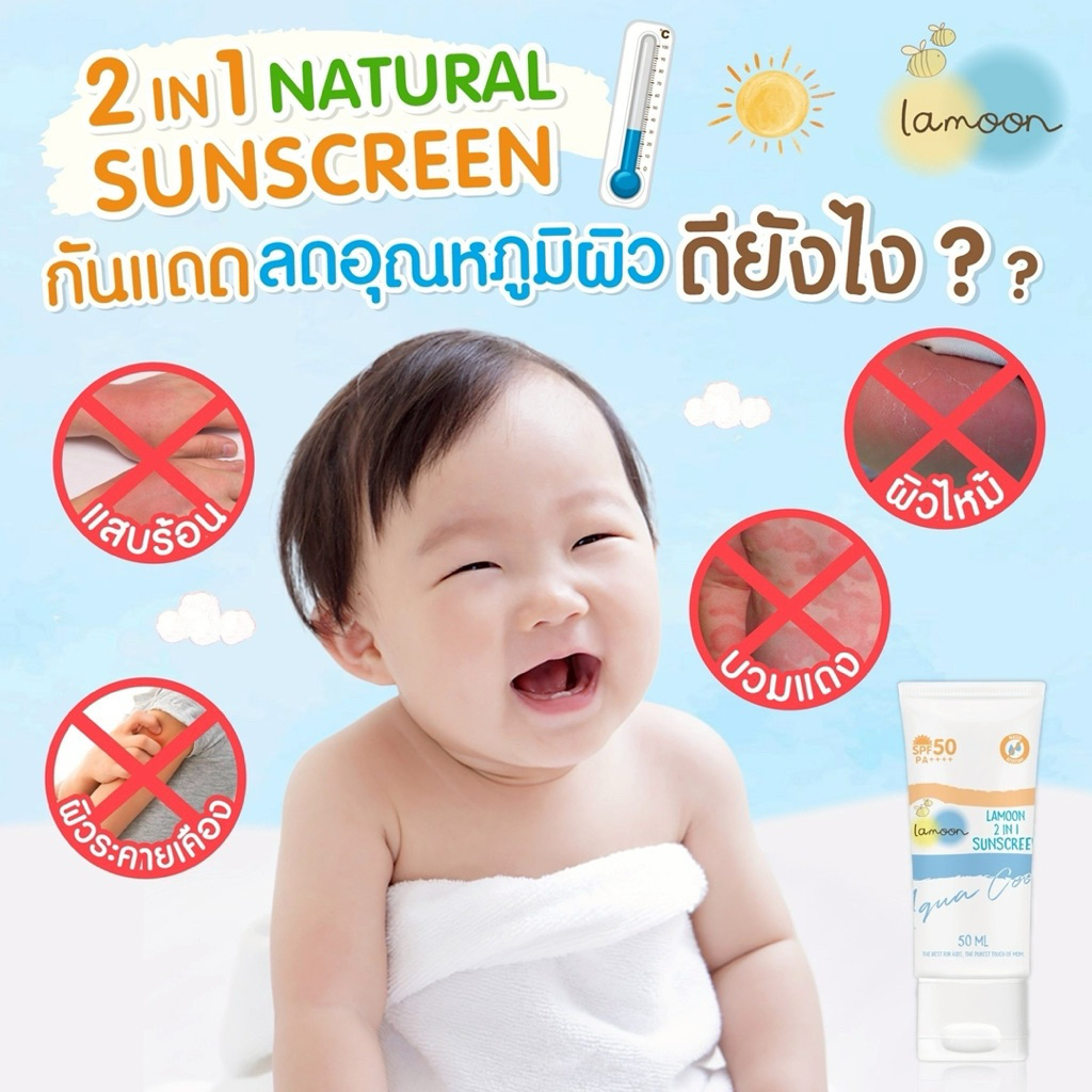 NEW‼️ Lamoon Baby กันแดดละมุน กันแดดเด็ก 2 in 1 Natural Sunscreen SPF50+ PA++++ สำหรับเด็ก 6 เดือนขึ้นไป