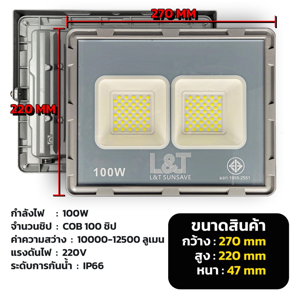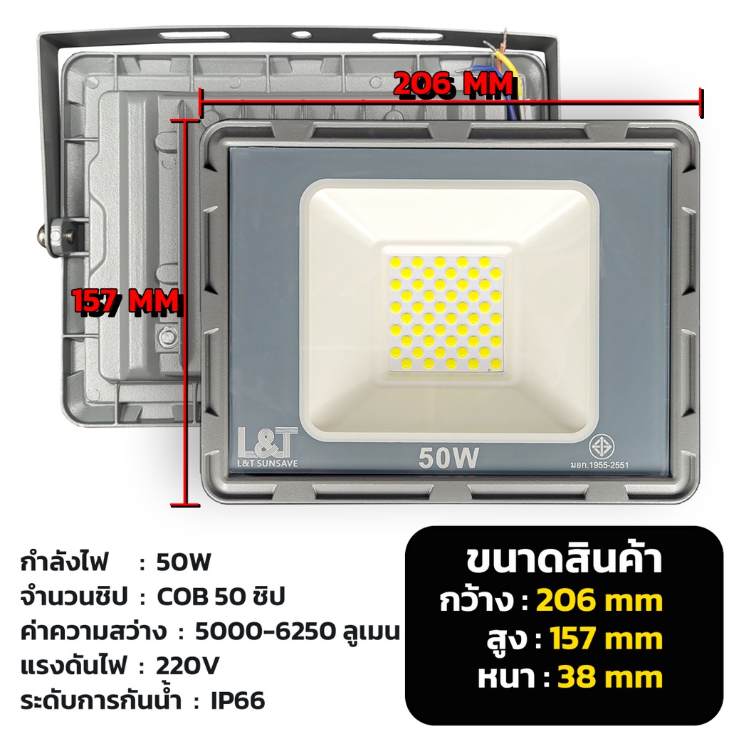 สปอร์ตไลท์ไฟบ้าน220V 50W 100W 200W 400W 500W ชิป COB สว่างตาบอด แถมประหยัดไฟ