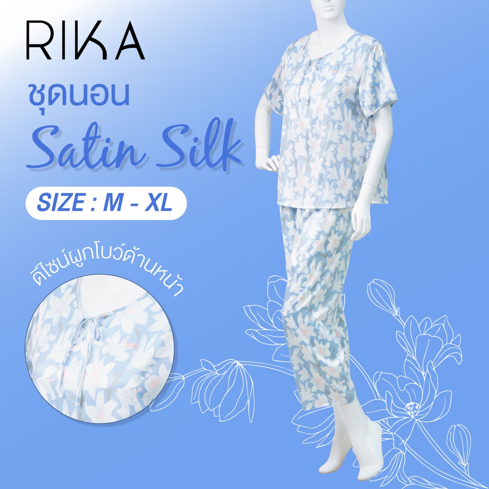 Rika ชุดนอนFV3050 ผ้าซานตินพิมพ์ลาย เนื้อนุ่ม เบาสไตล์เรียบหรู เสื้อ+กางเกง