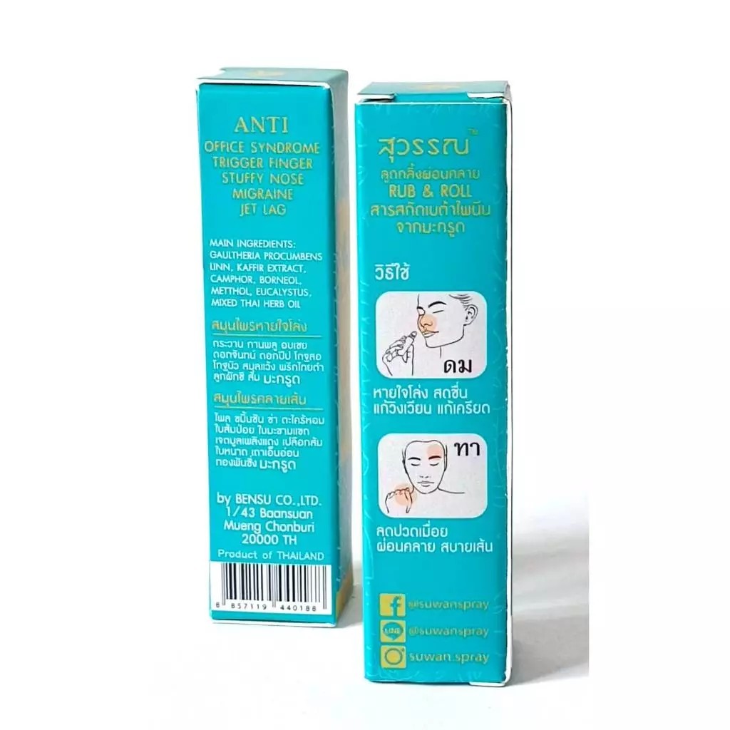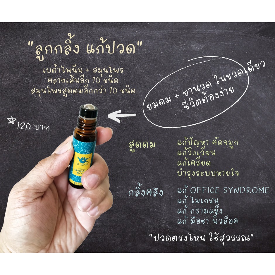 ลูกกลิ้งคลายปวดไมเกรน Office Syndrome 2in1 สุวรรณ 10ml สูตรสมุนไพร ลดอักเสบ ปวดกล้ามเนื้อ