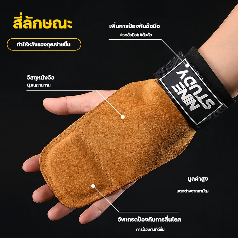 ถุงมือฟิตเนส STRAPS Leather Grip pads & Strap SKDK หนังกลับ สแต๊ป หนังวัว หนังแท้ รัดข้อมือ ถุงมือ เซพข้อ(1คู่)