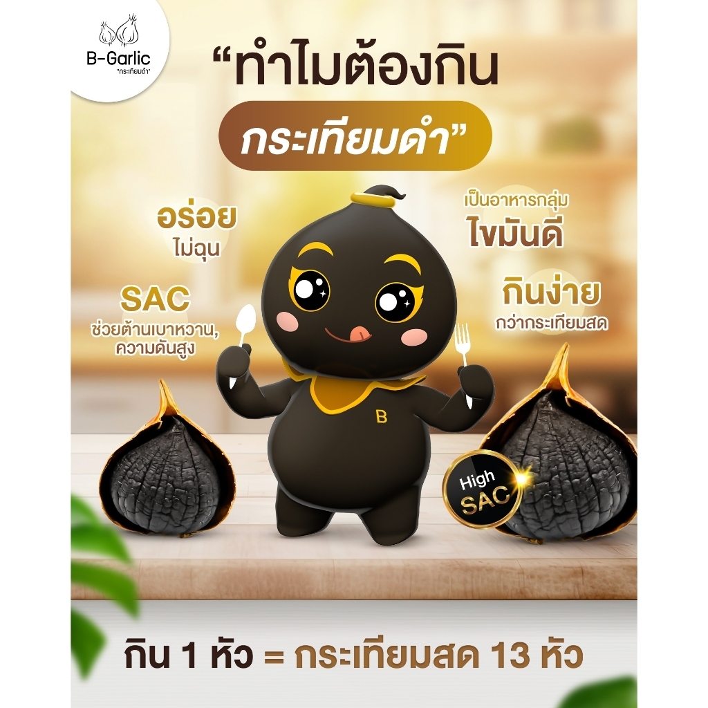 B-Garlic บีการ์ลิค " ส่งฟรี เซ็ต 3 ขวด " กระเทียมดำ รสหวาน ทานง่าย ( 1 ขวด/60 กรัม)