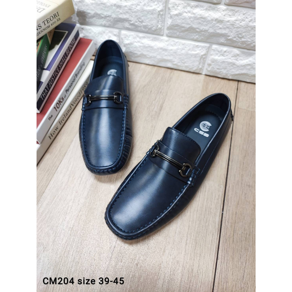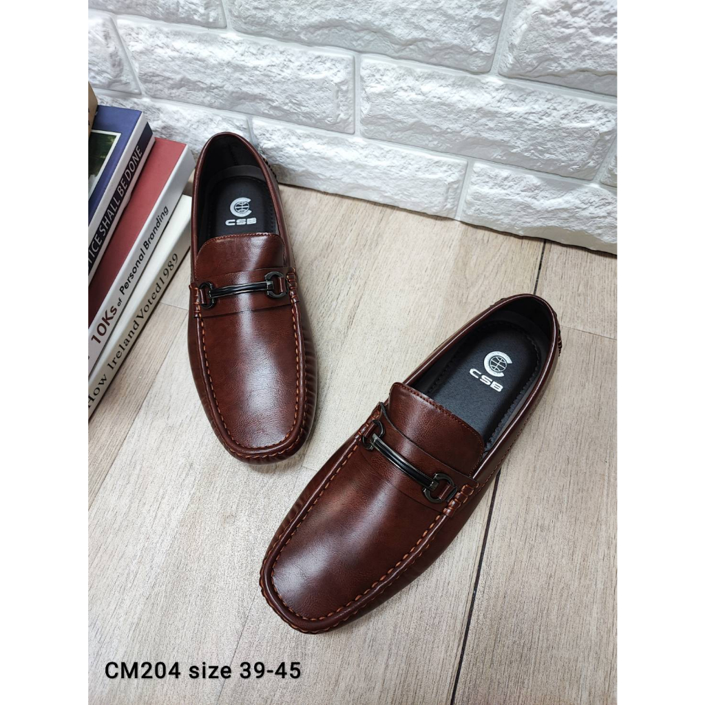 CM204รองเท้าลำลองผู้ชายพิ้นเตี้ยหนังเงาไม่มีส้นหน้าคาดอะไหล่