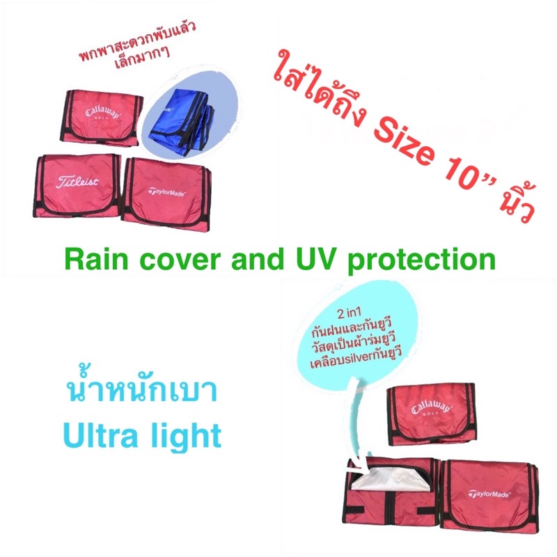 ถุงคลุมกันฝนถุงกอล์ฟ (ผ้าร่ม) Golf bag Rain cover 2 in 1 กันแดด-กันฝน ผ้าร่ม เบา พกพาสะดวก