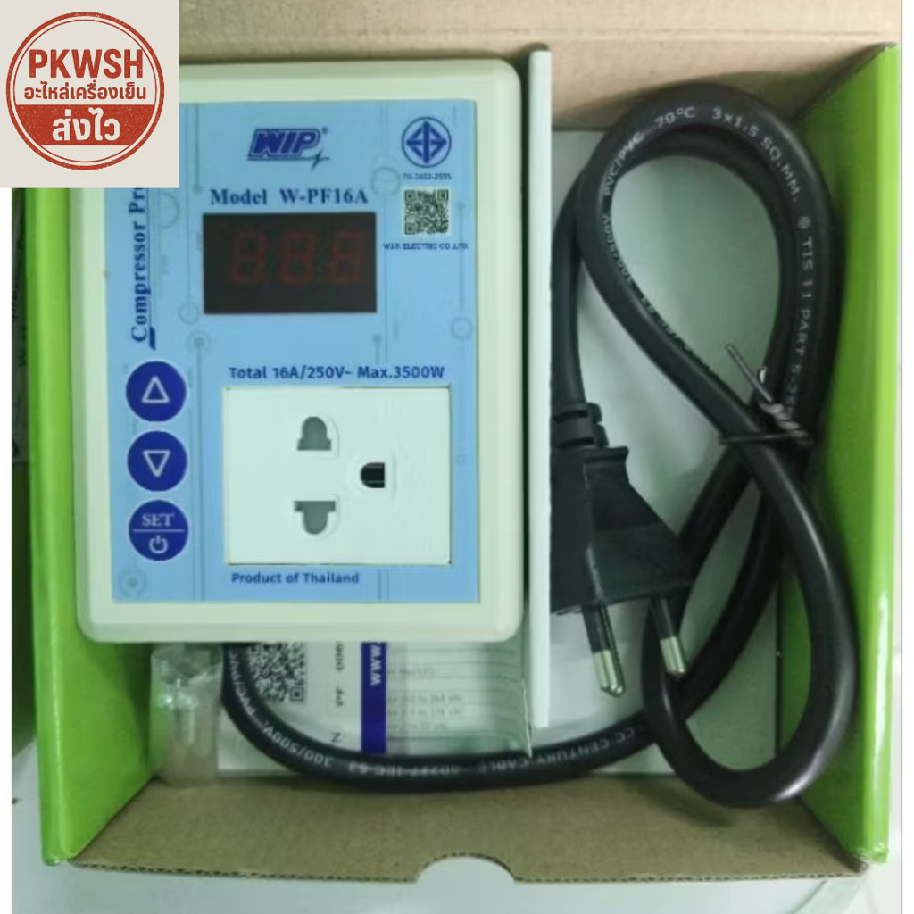 ป้องกันไฟตก WIP Protector 10A. 16A. ป้องกันไฟตก WPF10A 16A เซฟการ์ด ปลั๊กตู้แช่ กันไฟกระชาก