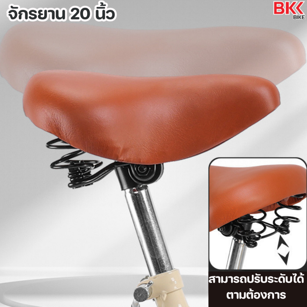 จักรยานเด็กโต จักรยานแม่บ้าน 20 นิ้ว จักรยานสไตล์วินเทจ เบาะนั่งสบายพร้อมตะกร้า มีกระดิ่ง #2226