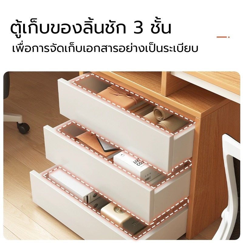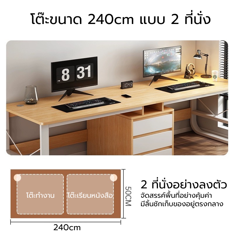 โต๊ะทำงานไม้ โต๊ะคอมพิวเตอร์มีชั้นวางของและลิ้นชัก Computer Desk ขนาด 120/240cm สวยมินิมอล แข็งแรง