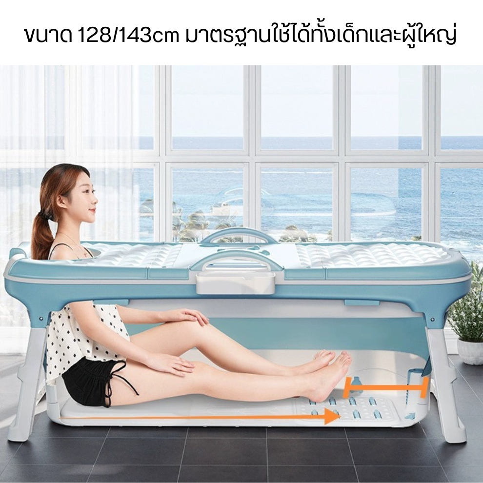อ่างอาบน้ำ แบบพับได้ อ่างแช่น้ำ ถังอาบน้ำพร้อมฝาปิด ผู้ใหญ่สามารถนอนแช่ได้ พลาสติกเกรดพรีเมียม