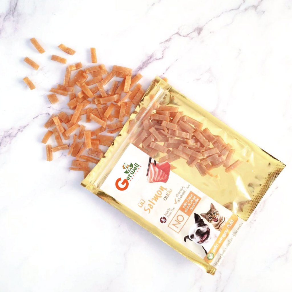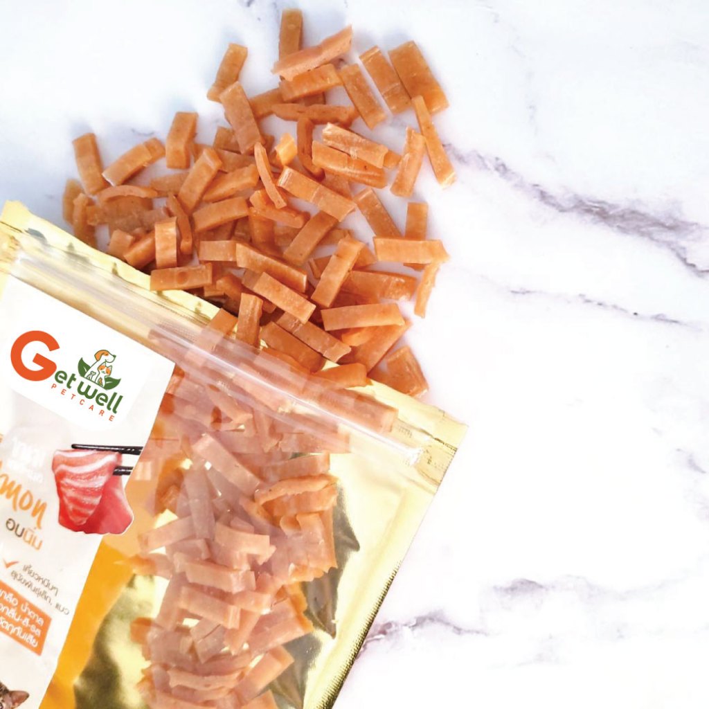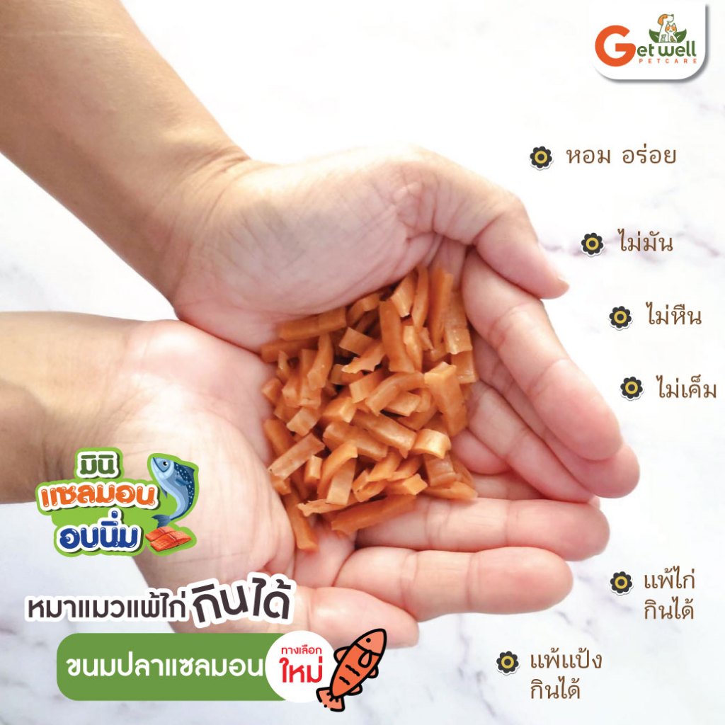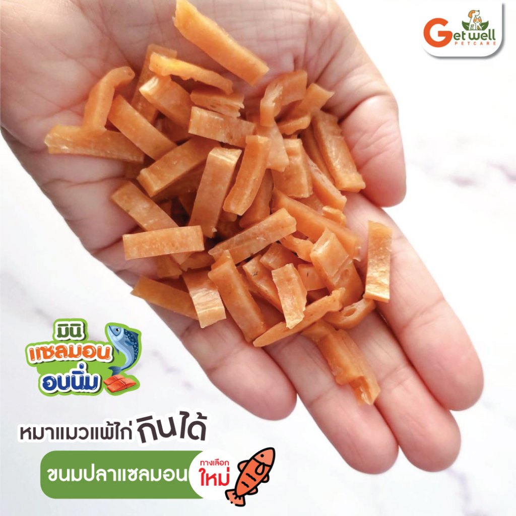 Get Well มินิ แซลมอนอบนิ่ม ขนมหมา ขนมแมว ไม่ปรุงรส แพ้ไก่ แพ้กลูเตน แพ้แป้ง กินได้