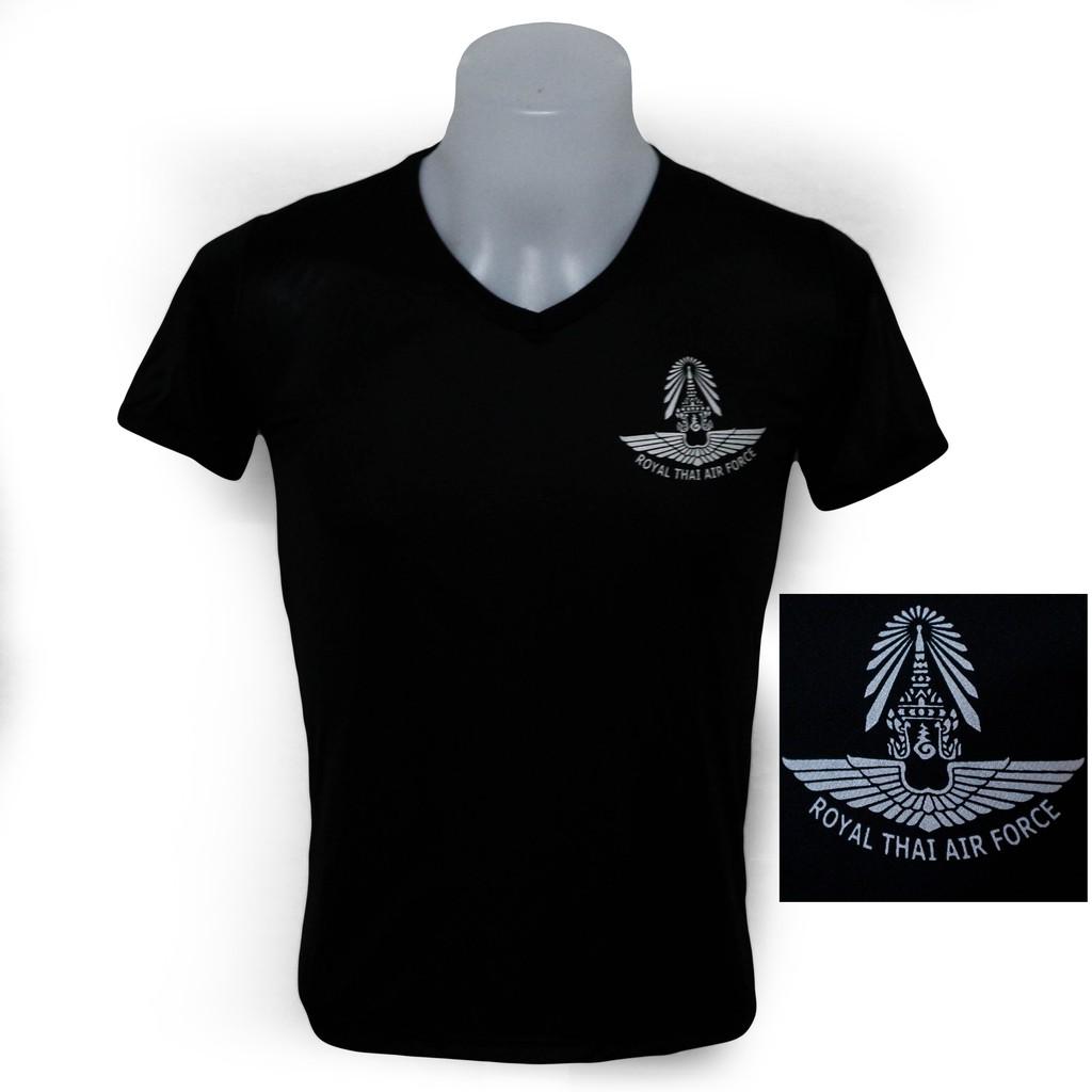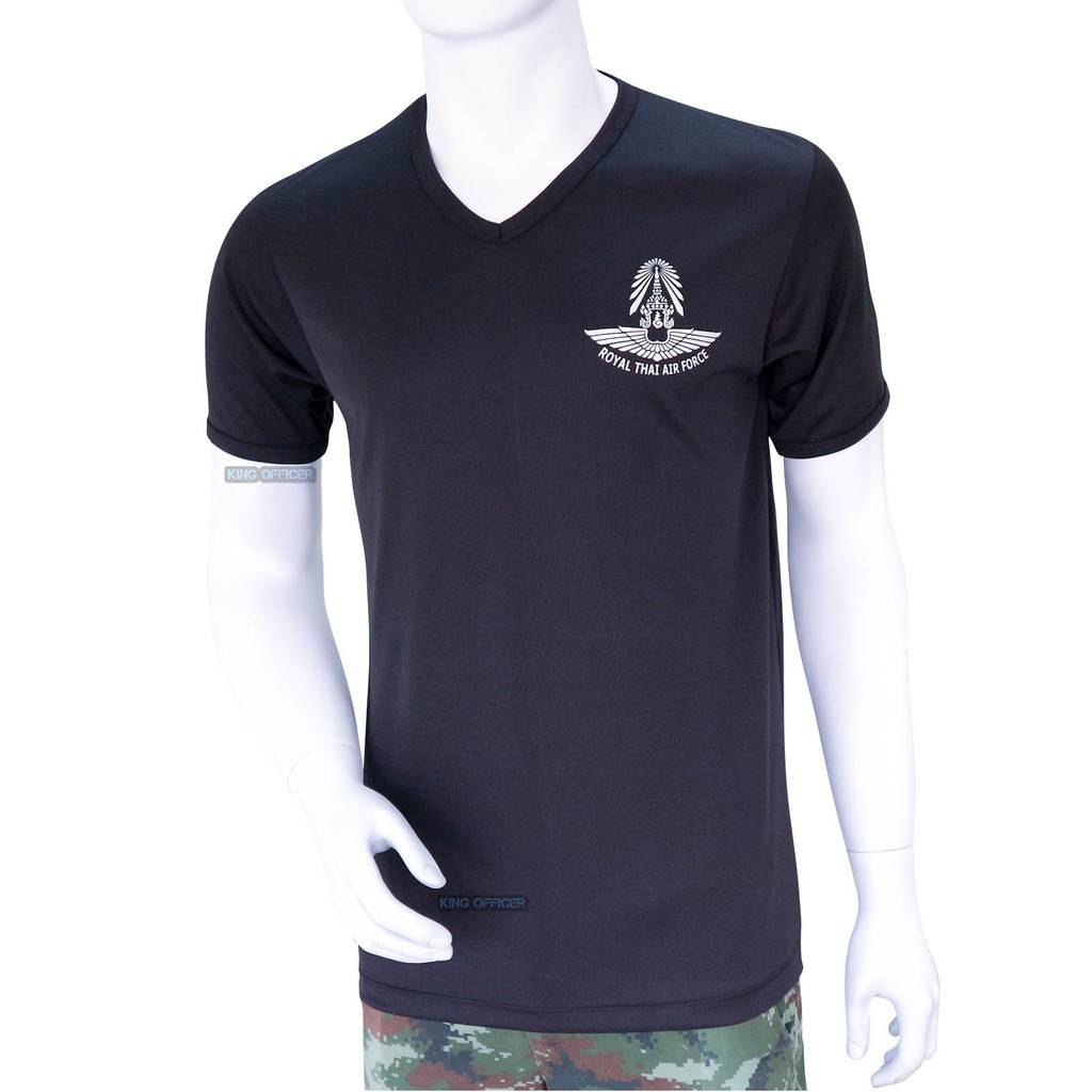 เสื้อยืด ทหารอากาศ สกรีน กองทัพอากาศ ทอ. สีดำ คอวี (แบรนด์ KING OFFICER A240)