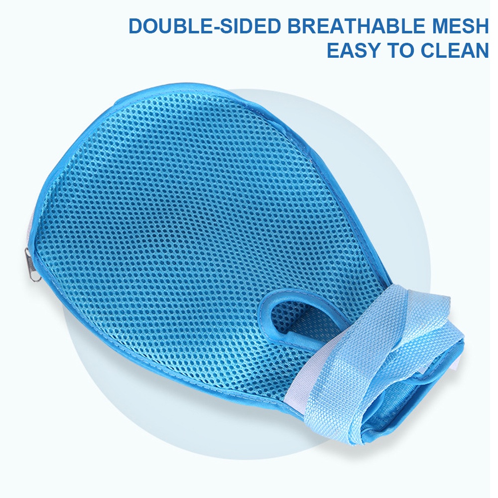 ถุงมือกันดึง ถุงมือผู้ป่วยติดเตียง พร้อมสายรัดติดเตียง 90cmในตัว ถุงมือระบายอากาศแบบพลิกกลับได้