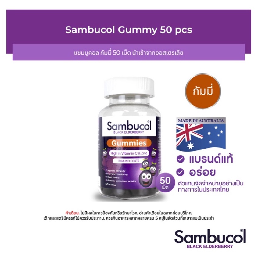 Sambucol Black Elderberry แซมบูคอล แบล็ค เอลเดอร์เบอรี่ Gummies 50เม็ด,Capsule 24แคปซูล,Liquid(ชนิดน้ำ) เสริมภูมิคุ้มกัน
