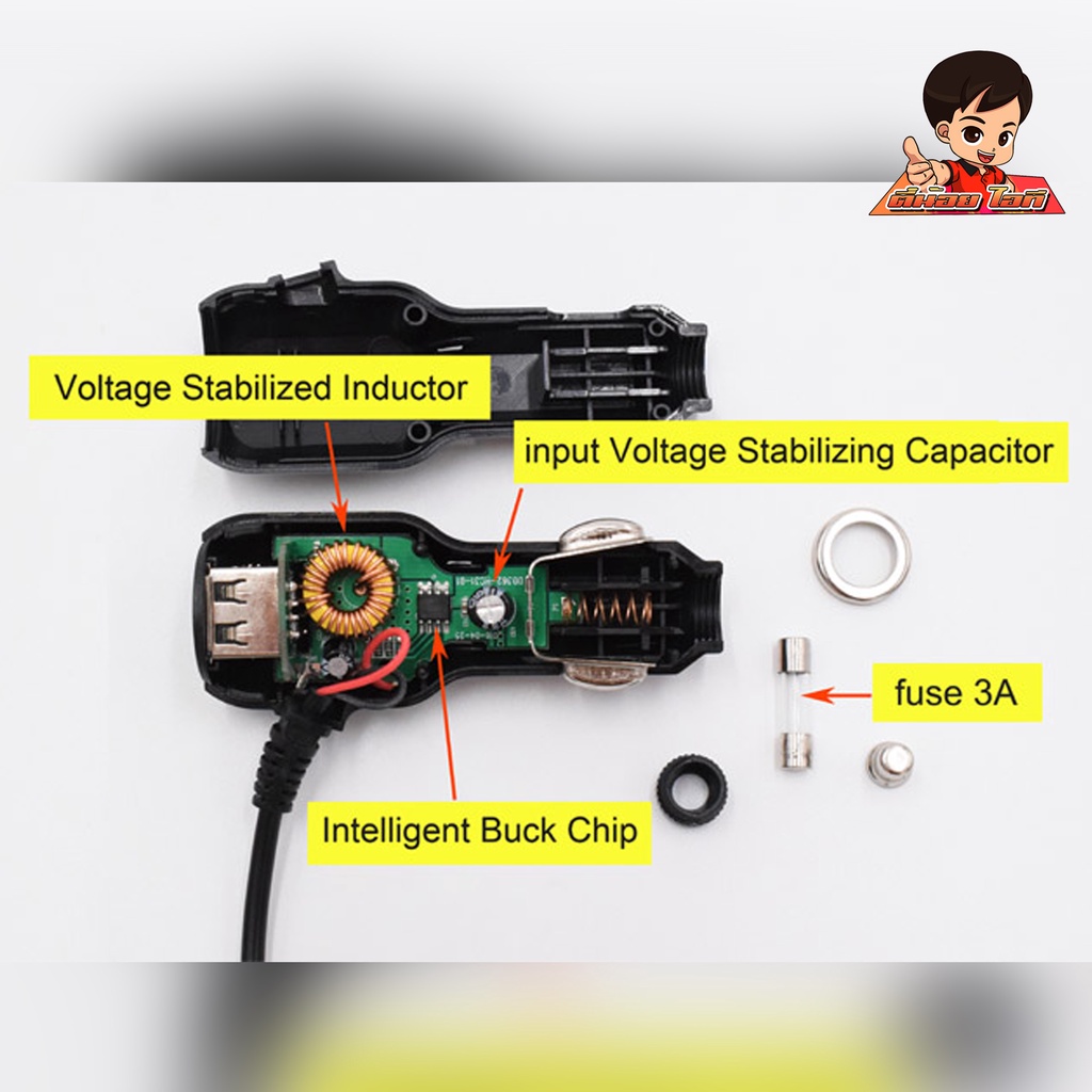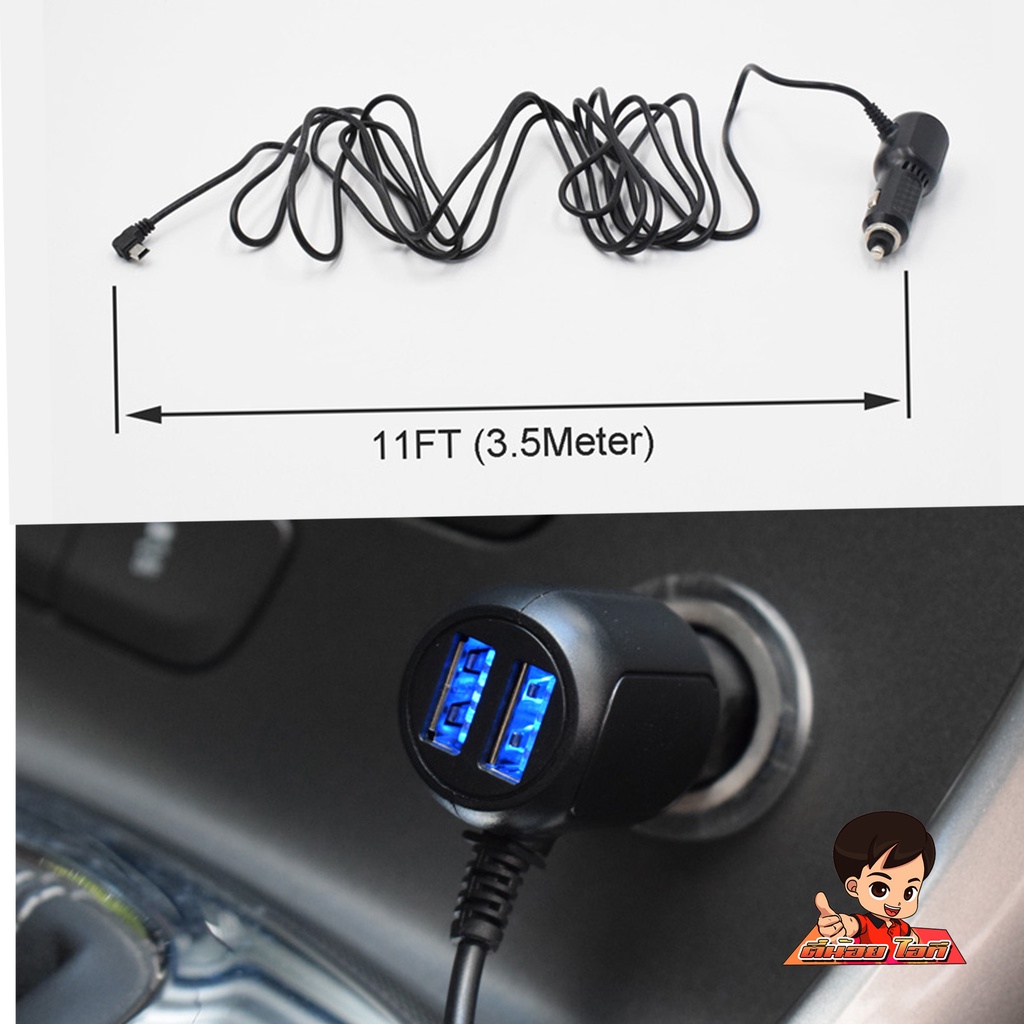 สายชาร์ทกล้องหน้ารถ Mini USB + ช่องเสียบUSB 2 ช่อง สำหรับชาร์ทมือถือ