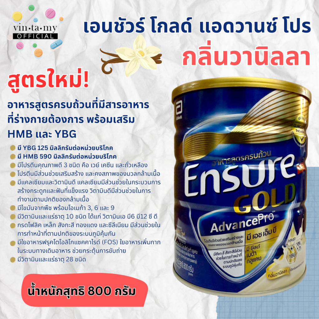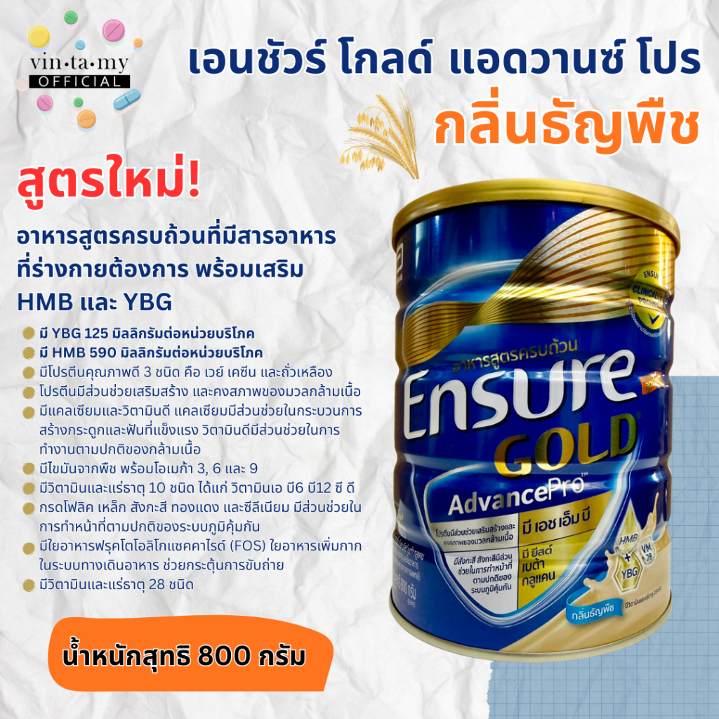 สินค้าแท้ 100% Ensure เอนชัวร์โกลด์ธัญพืช/วนิลา/กาแฟ/อัลมอนต์ขนาด800กรัม,และช๊อคโกแลต800กรัม