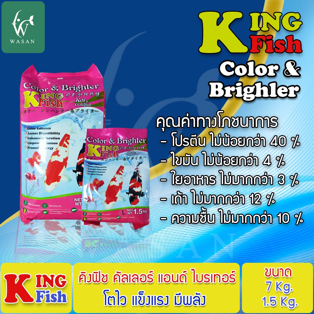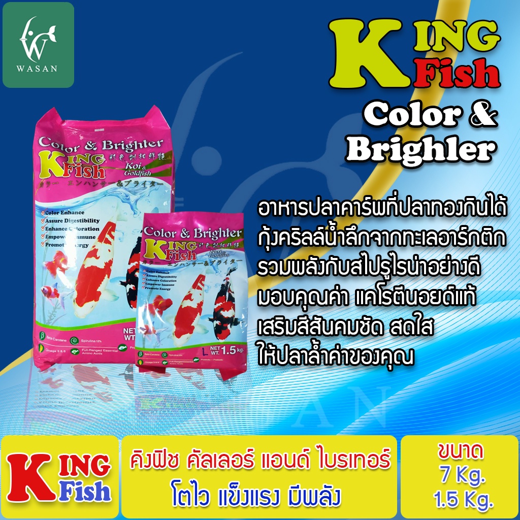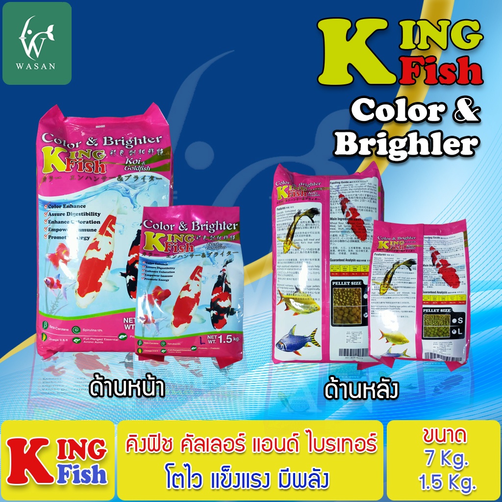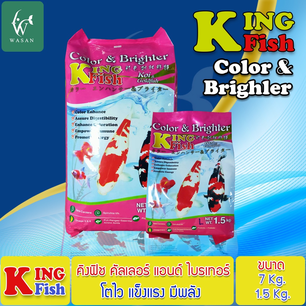 อาหารปลา คิงฟิช king fish Color & Brighter 1.5 kg.ไซต์ S อาหารปลาคาร์ฟ ปลาทอง เร่งสี ไม่ทำให้น้ำเสีย