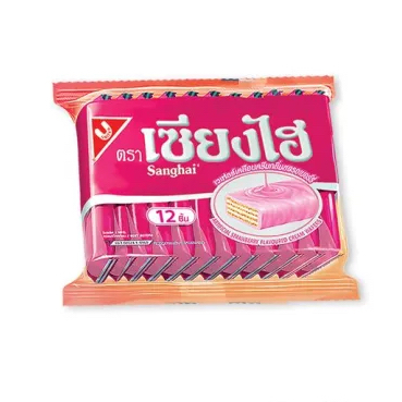 ขนม เซียงไฮ เวเฟอร์เคลือบครีม สตอเบอร์รี่ วานิลา ช็อคโกแลต นม 1แพ็ค 12ชิ้น อร่อย ยุค90 เพลิน