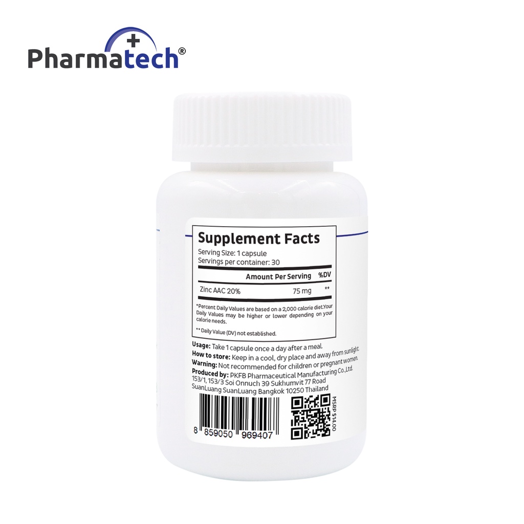 [แพ็ค 3 ขวด] ซิงค์ ฟาร์มาเทค Zinc Pharmatech แร่ธาตุสังกะสี Zinc AAC ให้ ซิงค์ 15 mg. สูงสุดที่ อย.อนุญาต วิตามินซิงค์