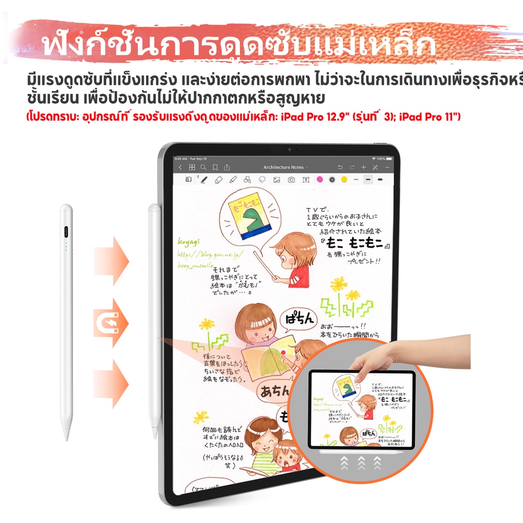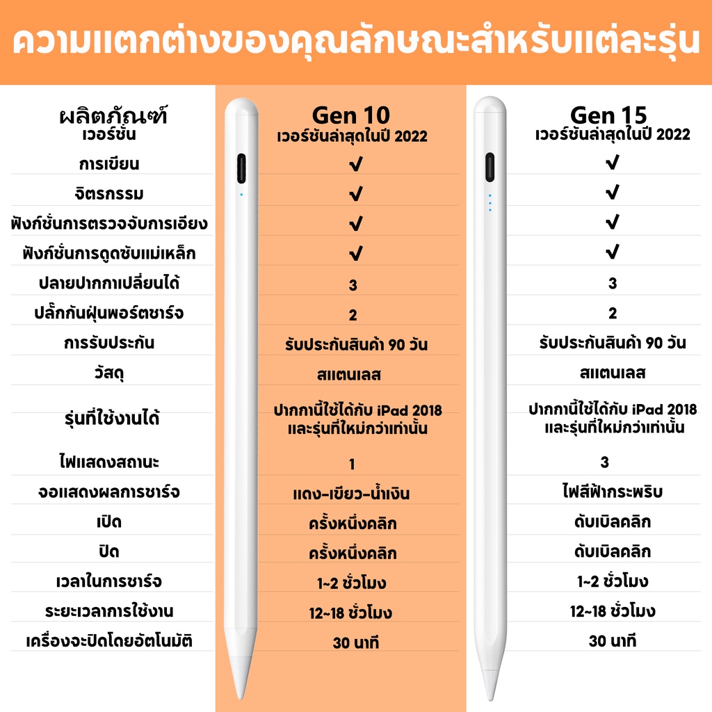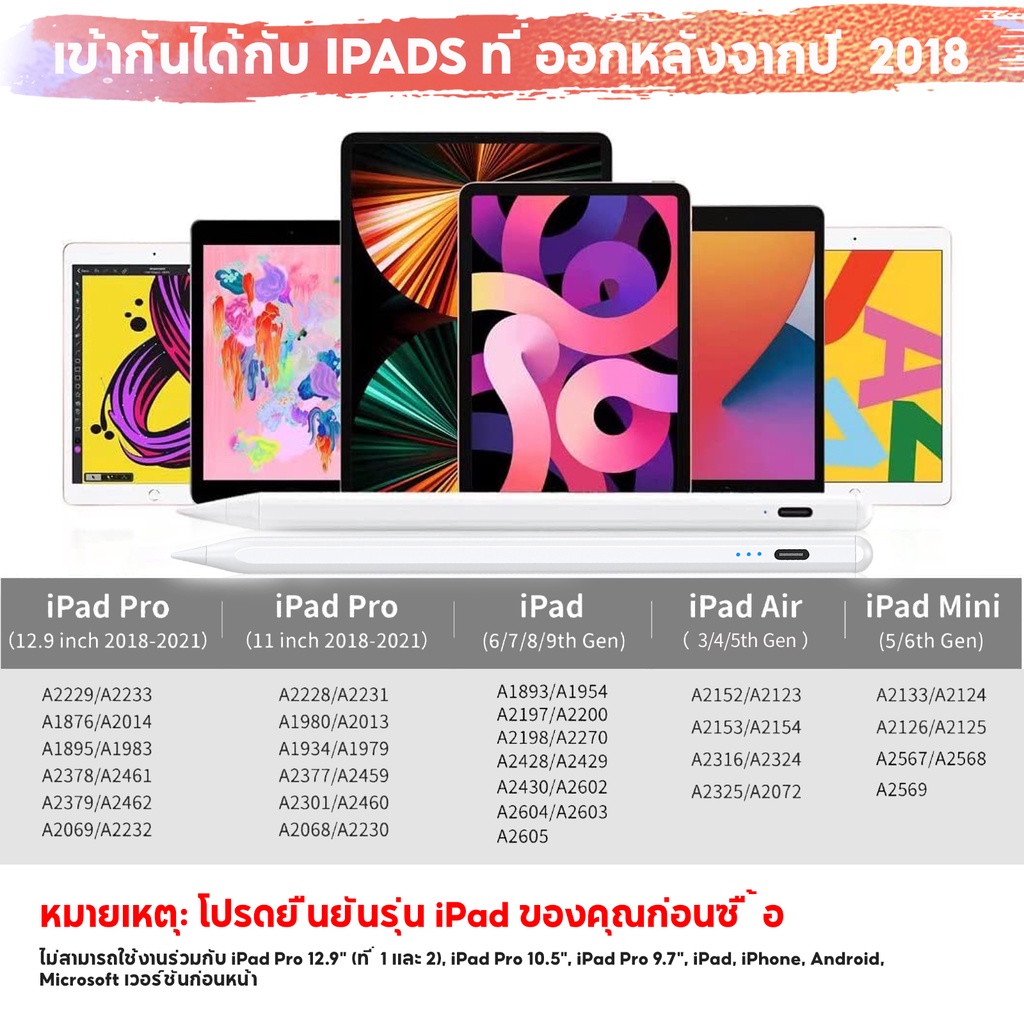 [ไม่ล่าช้า ปากกาไอแพด] ปากกาสไตลัส Pencil วางมือ+แรเงาได้ Stylus Pen สำหรับ iPad Air5 Air4,3 Gen10,Gen9,Gen8,7,6 Mini6,5