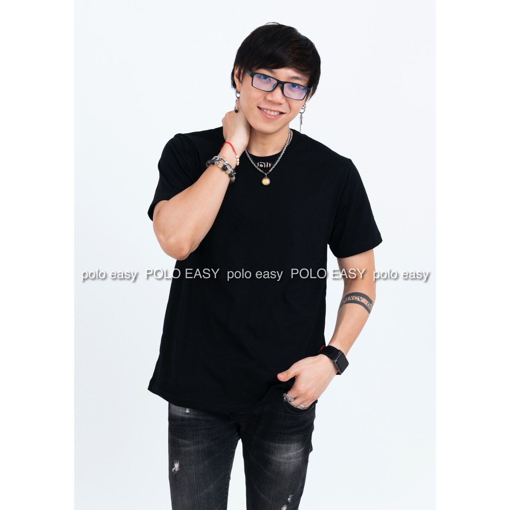 เสื้อยืดแฟชั่น ผู้ชาย T-Shirt Cotton 100% คอกลม แขนสั้น สีดำ