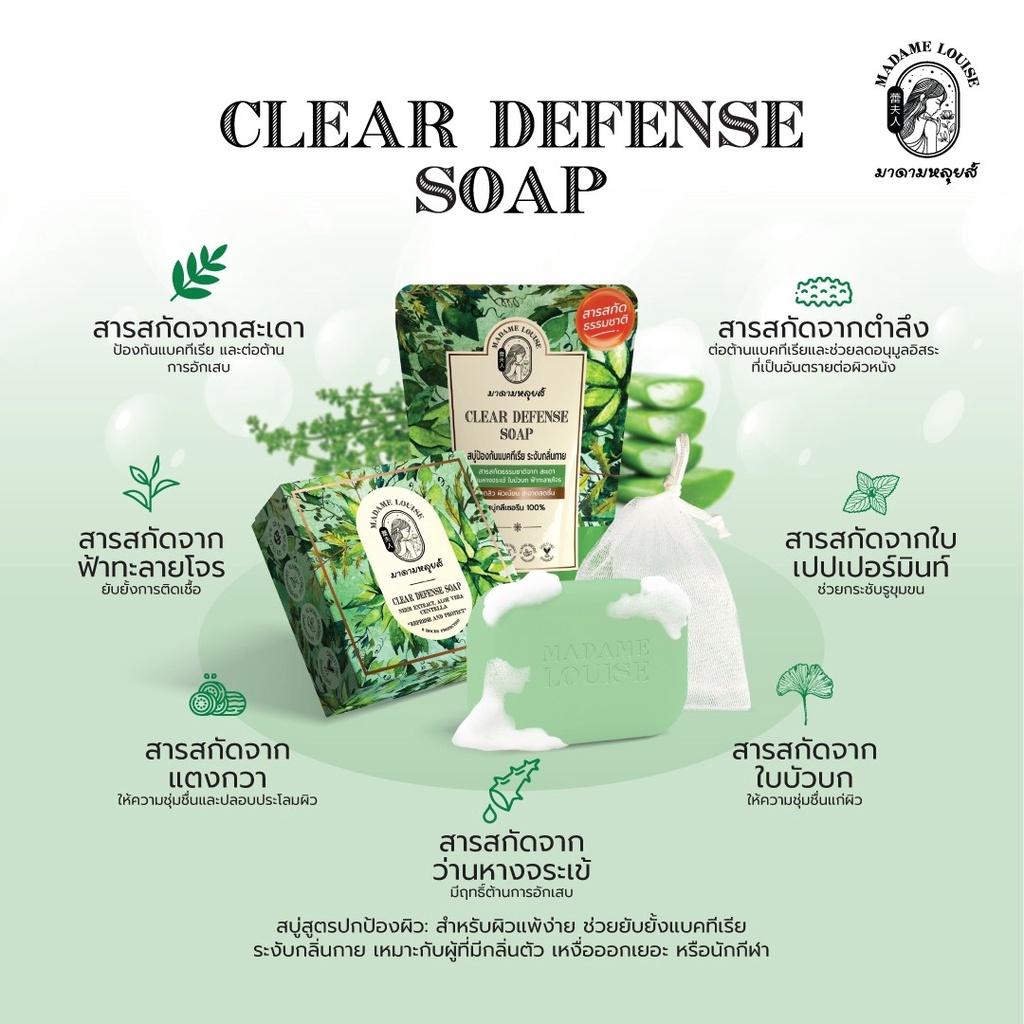 CLEAR DEFENSE SOAP สบู่สูตรปกป้องผิวยาวนาน 6 ชั่วโมง ขนาด 80 กรัม
