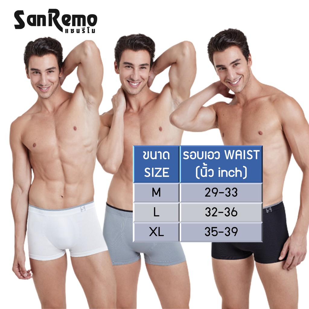 Sanremo Boxer Seamless (1 ตัว) แซนรีโม กางเกงในชาย บ๊อกเซอร์ ไร้ตะเข็บข้าง นุ่มสบาย เบา กระชับ ไม่อึดอัด 3 สี NIS-SRMSL2