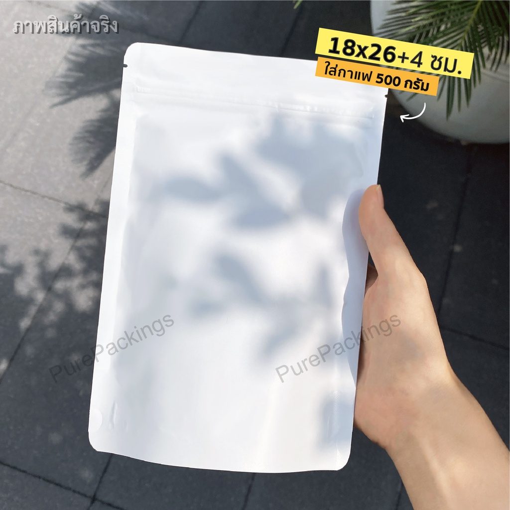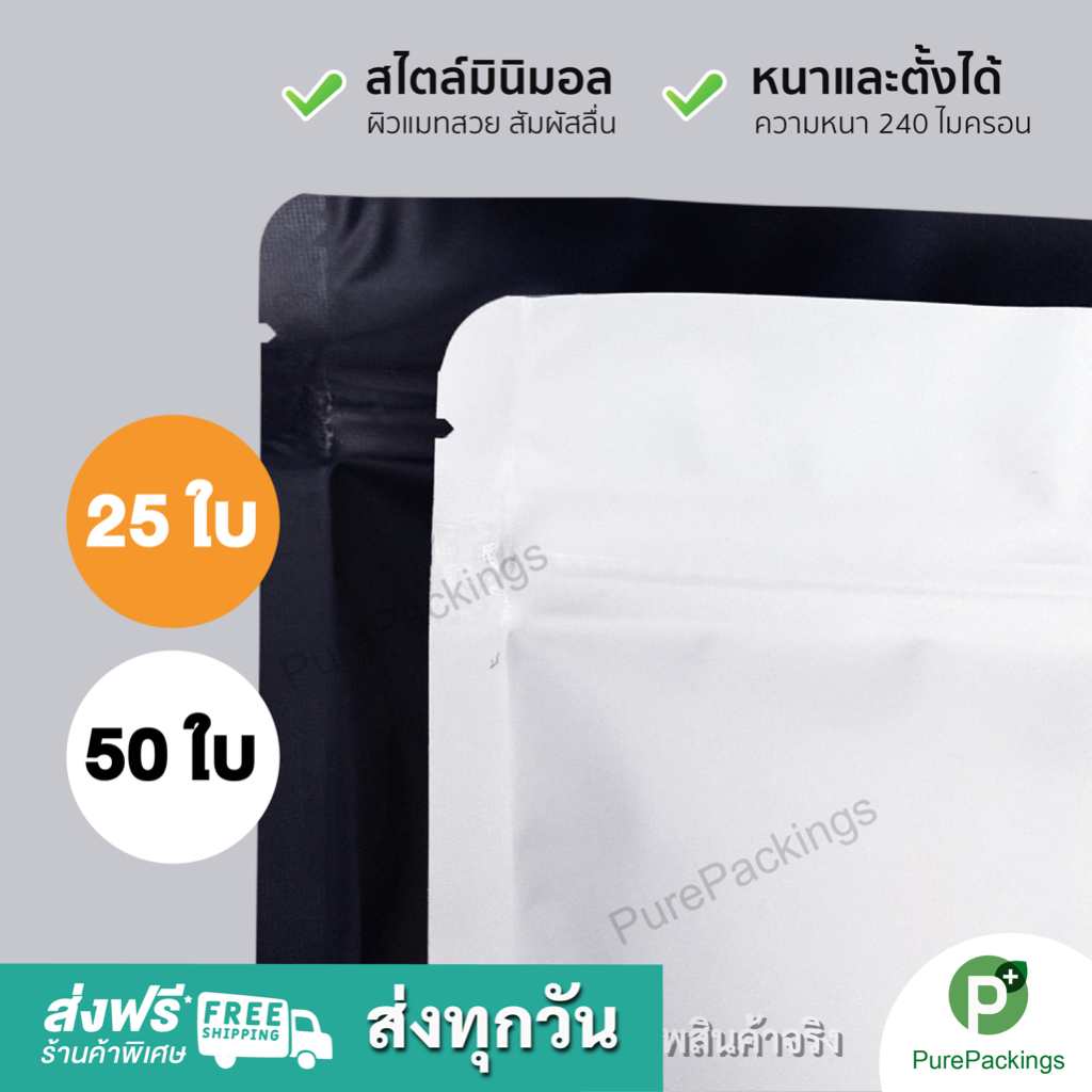 🌈ถุงซิปฟอยด์🌈☕️ ตั้งได้-ตั้งไม่ได้ สีทึบ หนาพิเศษ สีขาว/ดำด้าน (50ใบ) ถุงกาแฟ ใส่ขนม aluminum foil zip bag